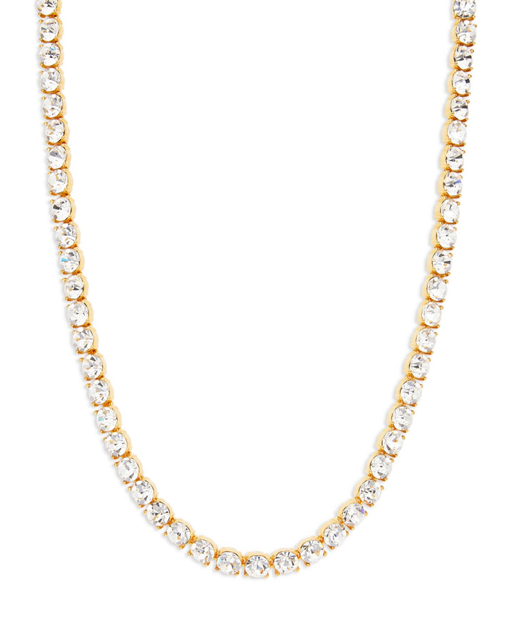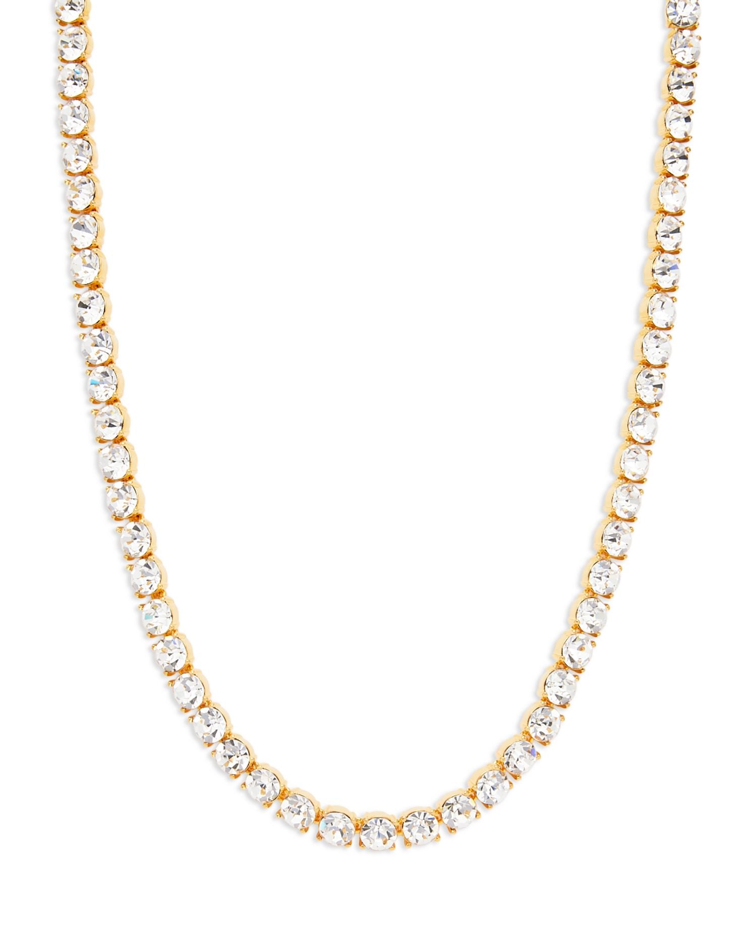 This 22K Gold Plated Swarovski Crystal Toggle Necklace by Kenneth Jay Lane is a luxurious piece that combines a bold toggle closure with the brilliance of Swarovski crystals. Its 22K gold-plated finish ensures timeless sophistication, perfect for day-to-night styling.