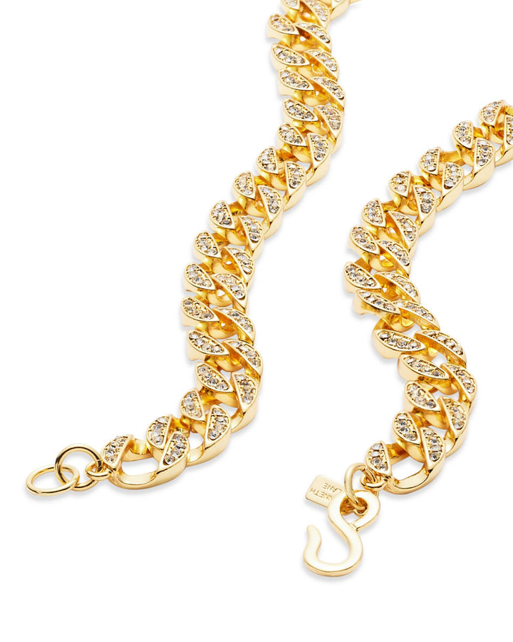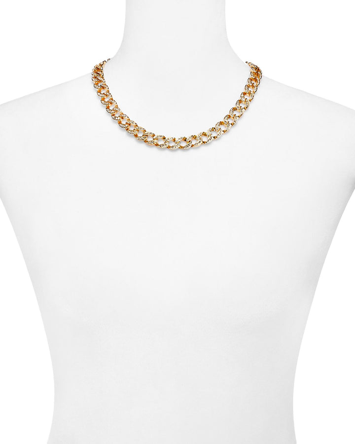 Pavé Curb Chain Collar Necklace in Gold Tone, 17'