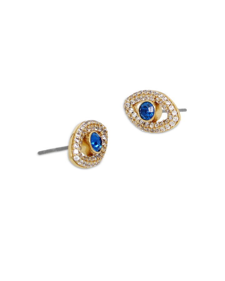 Pavé & Blue Crystal Evil Eye Stud Earrings in Gold Tone