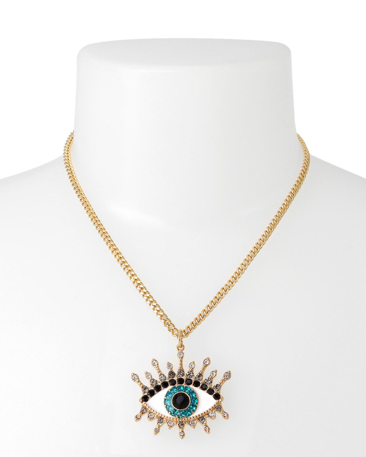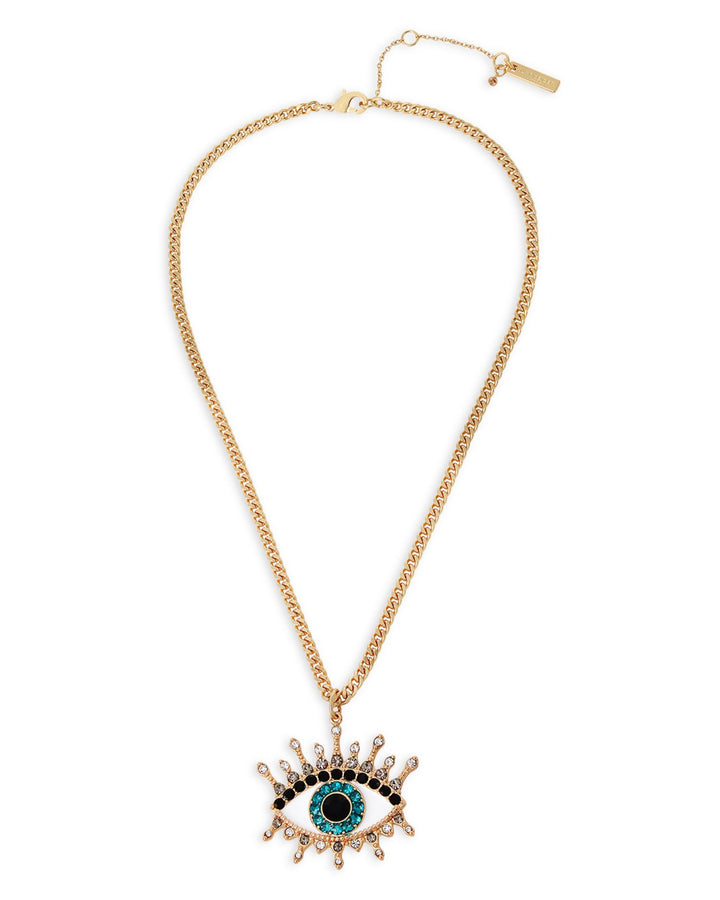This Evil Eye Pendant Necklace, 16-18' by Kurt Geiger London offers a contemporary take on the iconic symbol of protection. Featuring a bold enamel and crystal design, this necklace is both stylish and meaningful, making it ideal for layering or wearing as a standout piece.