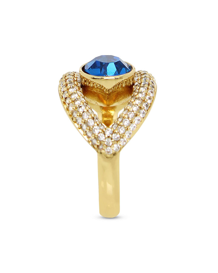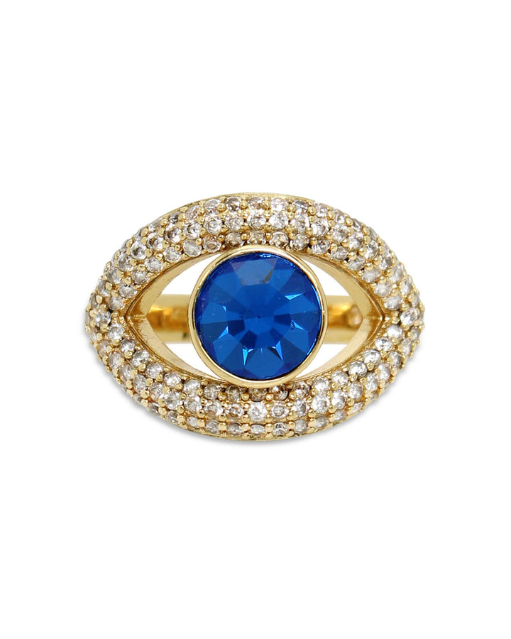 Pavé & Blue Crystal Evil Eye Cocktail Ring in Gold Tone