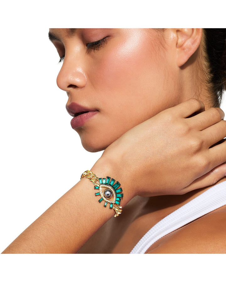 Crystal & Imitation Pearl Evil Eye Curb Chain Bracelet, 16'-18'