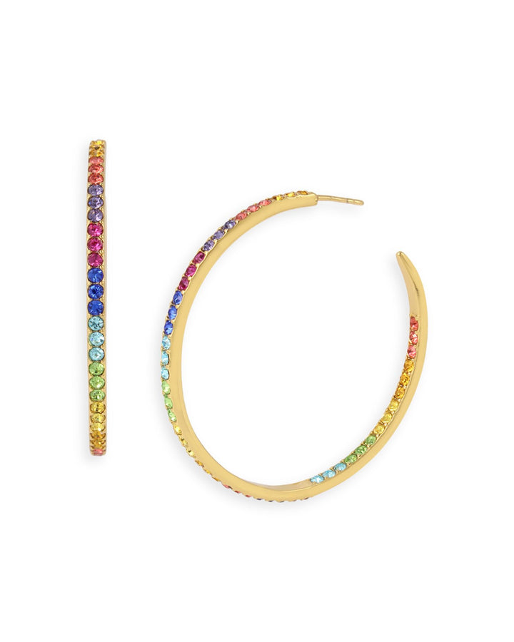 These Rainbow Pavé Hoop Earrings by Kurt Geiger London bring a vibrant pop of color to a classic hoop design. Adorned with multicolor pavé crystals, these earrings are perfect for making a bold, joyful statement.