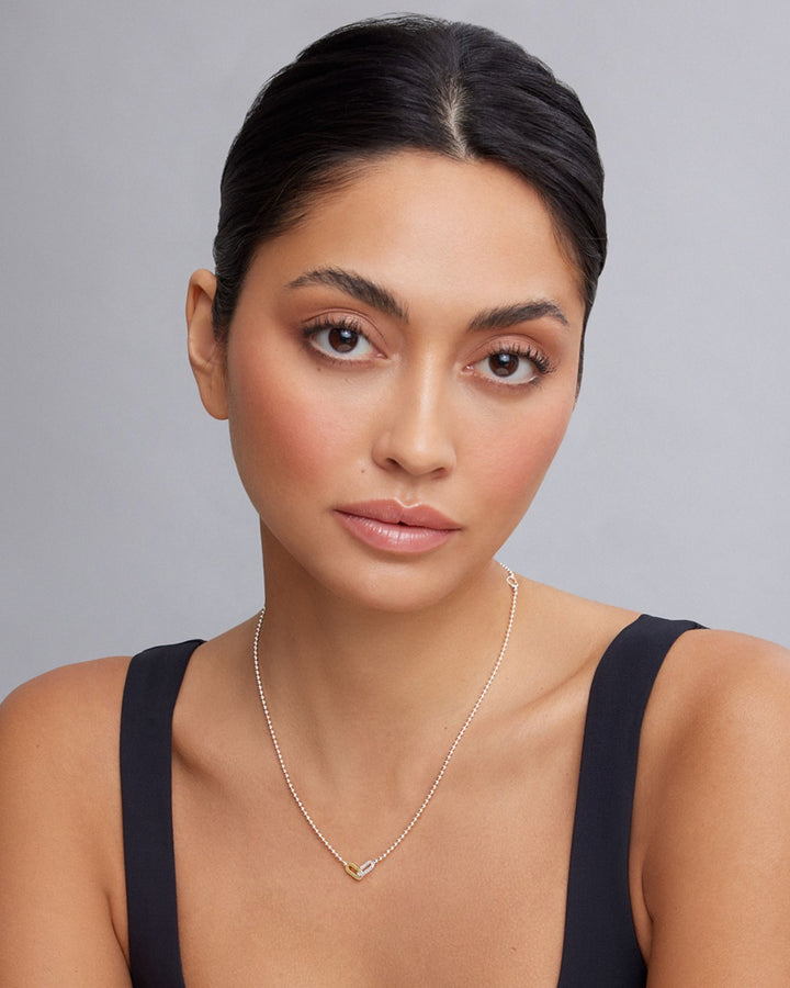 18K Yellow Gold & Sterling Silver Caviar Lux-Clip Diamond Bead Link Necklace, 16-18" - Exclusive