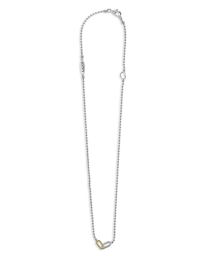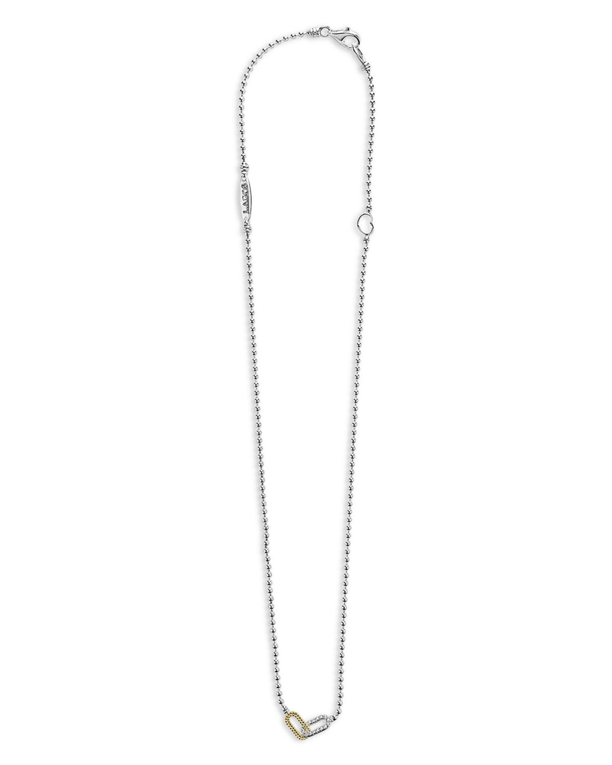 This 18K Yellow Gold & Sterling Silver Caviar Lux-Clip Diamond Bead Link Necklace, 16-18" - Exclusive by LAGOS from the Caviar Lux-Clip collection is a luxurious statement piece. Featuring interlocking yellow gold and diamond links on a fine Caviar bead chain, this necklace exudes elegance and sophistication.