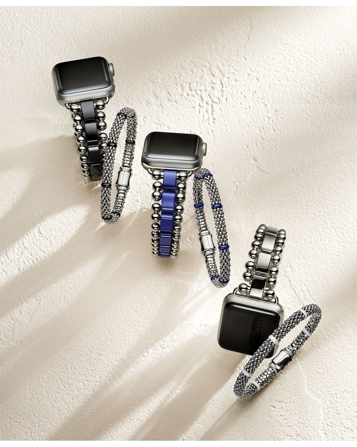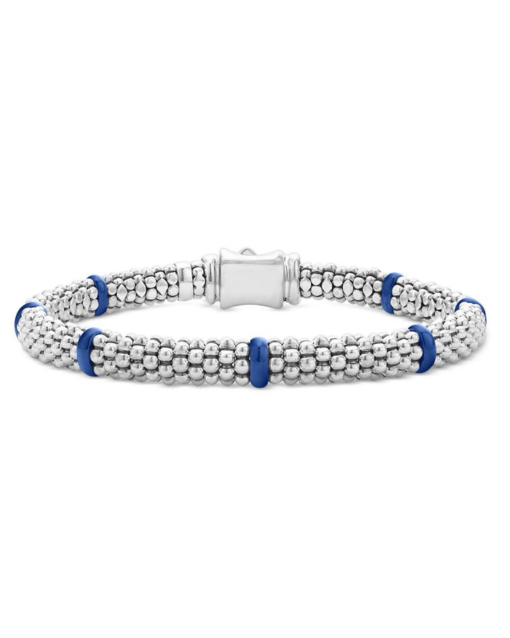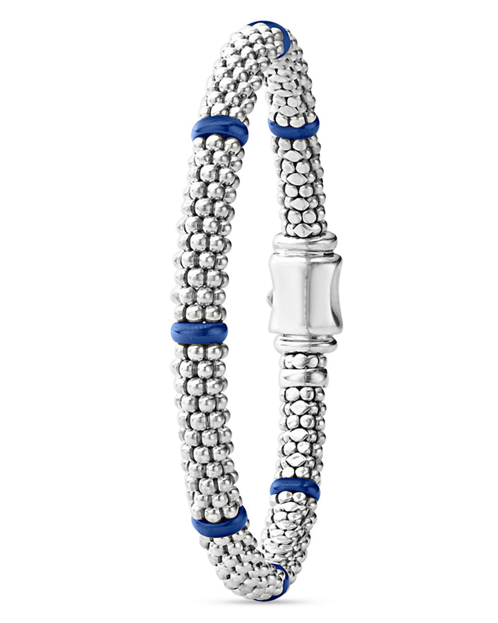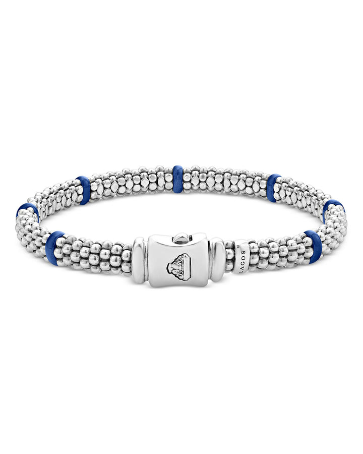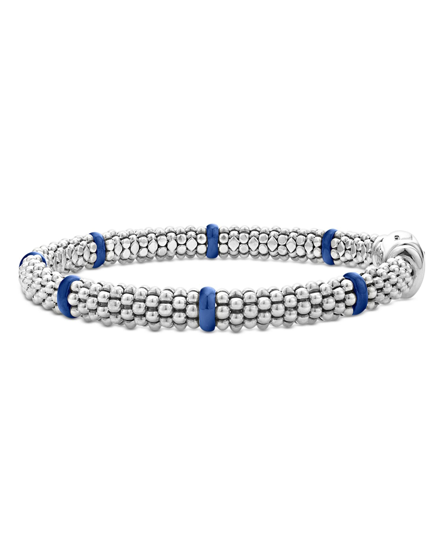 These Sterling Silver Blue Caviar Ultramarine Ceramic Beaded Bracelets by LAGOS offer a bold and modern twist on the brand's signature Caviar design. Featuring vibrant ultramarine blue ceramic rondelles paired with sterling silver beading, these bracelets make a striking statement, perfect for stacking or wearing solo.