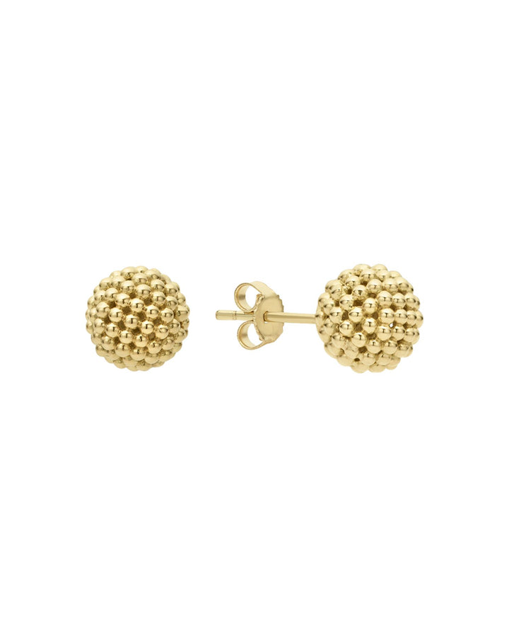 These Caviar Gold Collection 18K Gold Stud Earrings by LAGOS from the Caviar Gold collection are the epitome of timeless elegance. Featuring the classic Caviar beaded design, these luxurious 18K gold studs add a refined touch to any outfit.