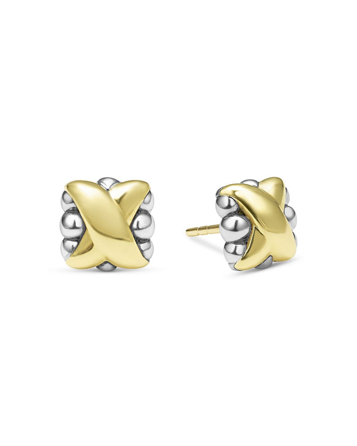 18K Yellow Gold & Sterling Silver Embrace X Bead Stud Earrings