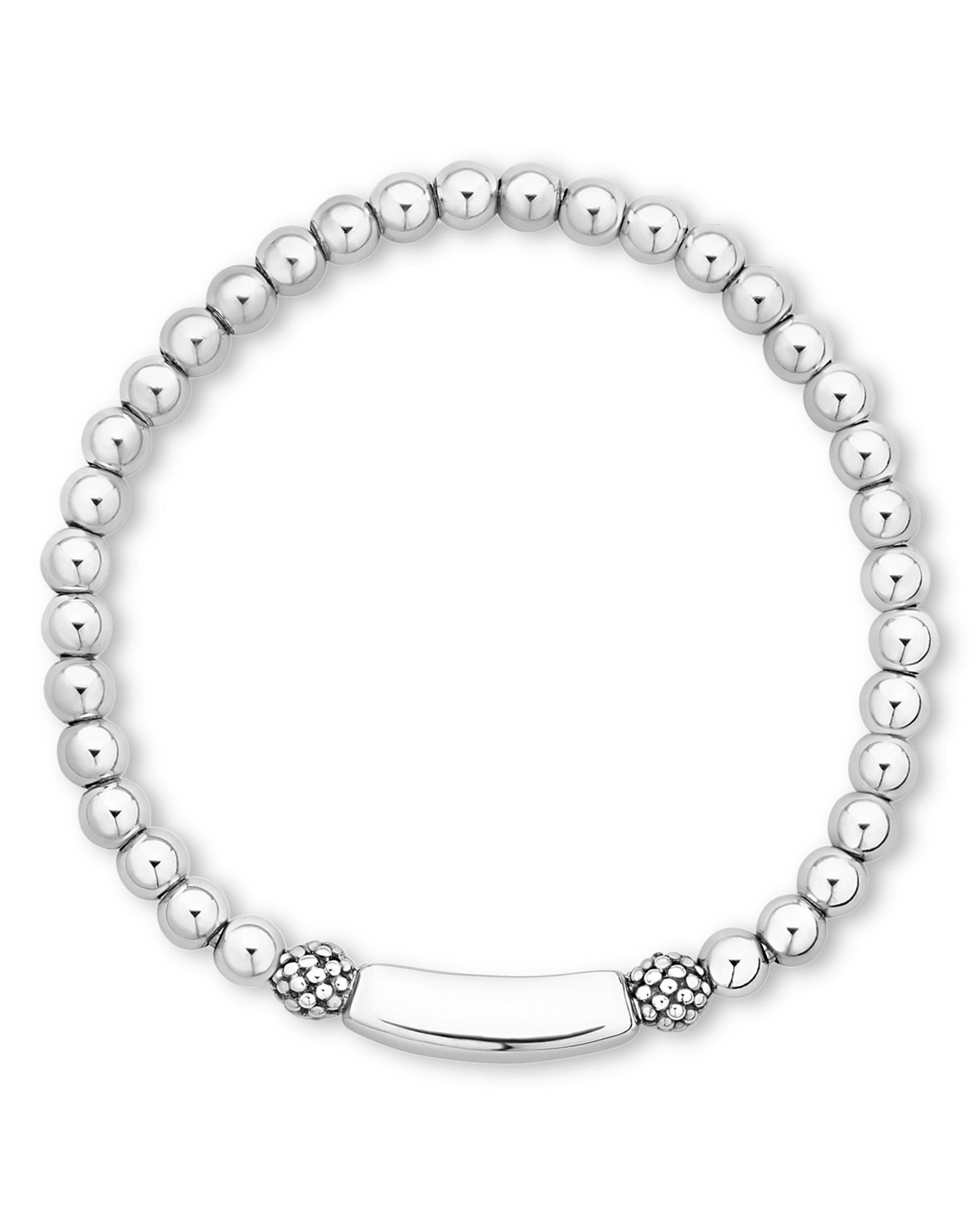 This Sterling Silver Signature Caviar XOXO Station Bracelet by LAGOS offers a playful and stylish touch with its engraved "XOXO" station on a sleek beaded design. A versatile piece from the Signature Caviar Collection.
