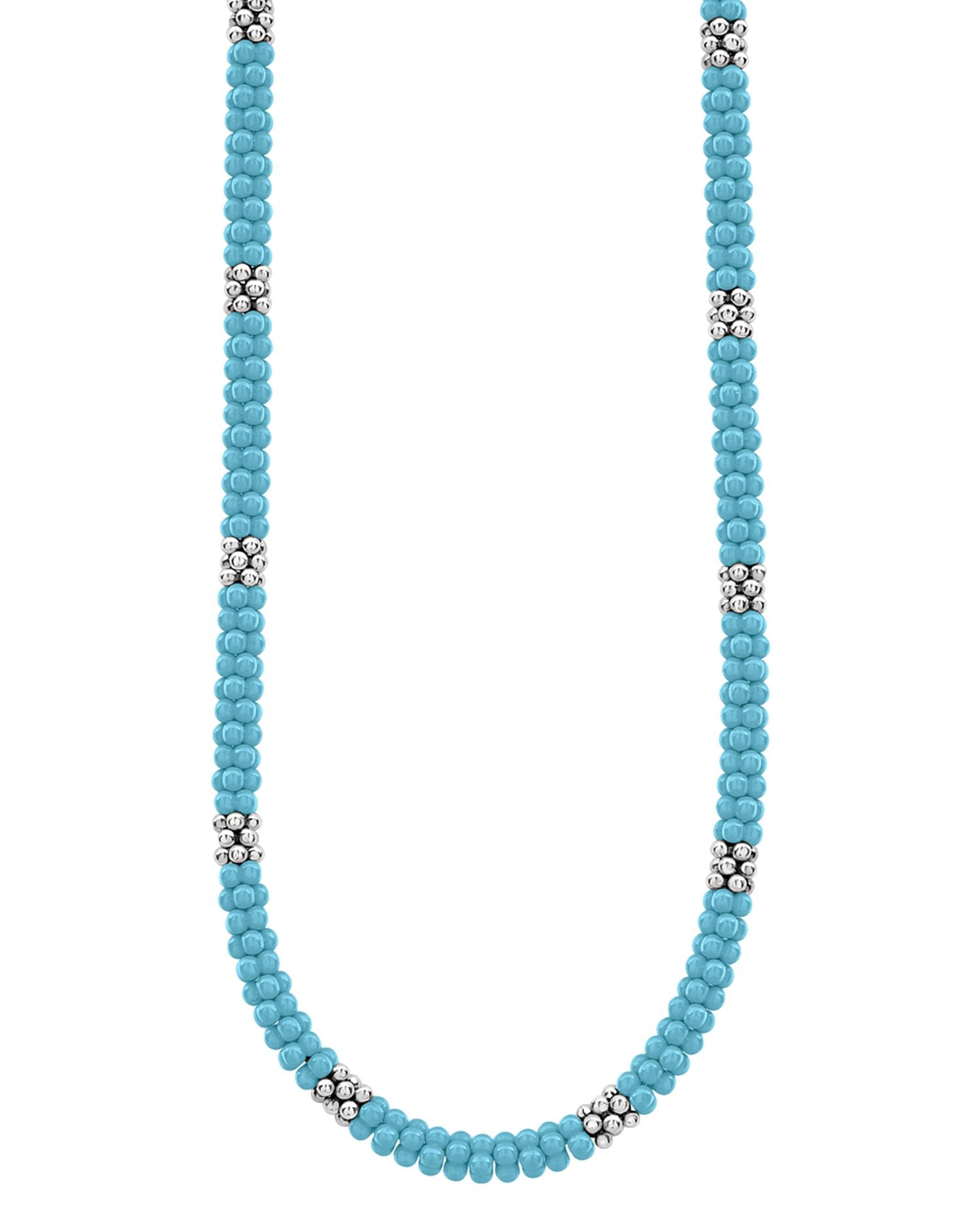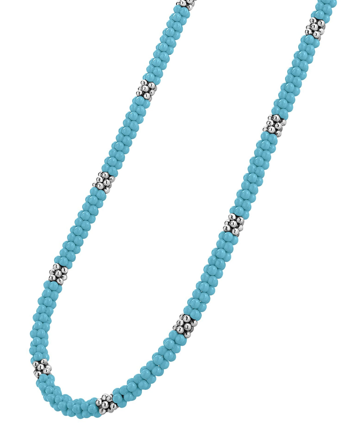 Sterling Silver Caviar Blue Caviar Ceramic Beaded Necklace, 16"