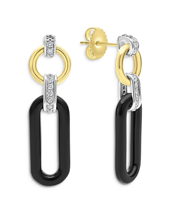 18K Gold Signature Caviar Diamond & Black Ceramic Link Drop Earrings