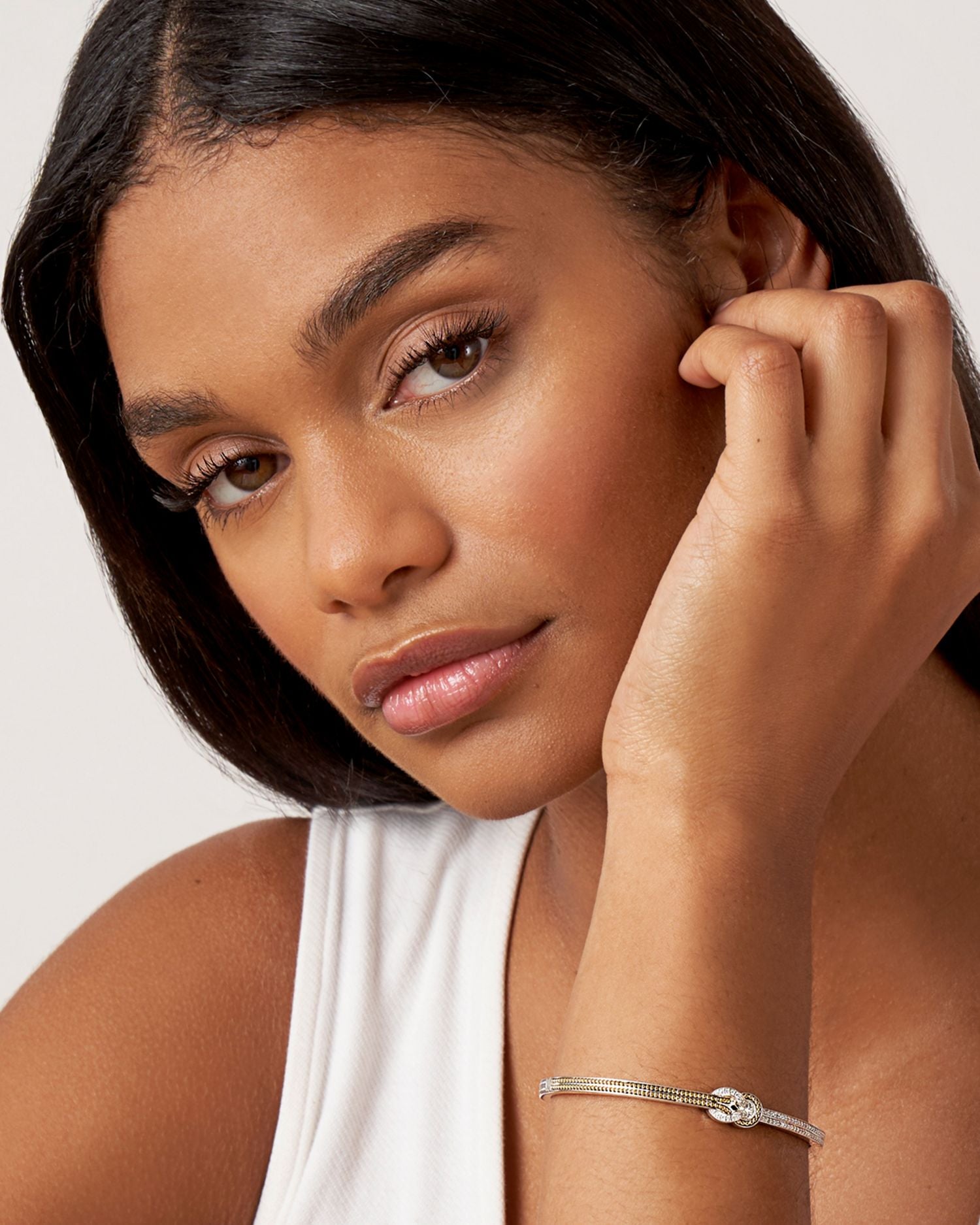 18K Yellow Gold & Sterling Silver Newport Diamond Knot Hinged Bangle Bracelets