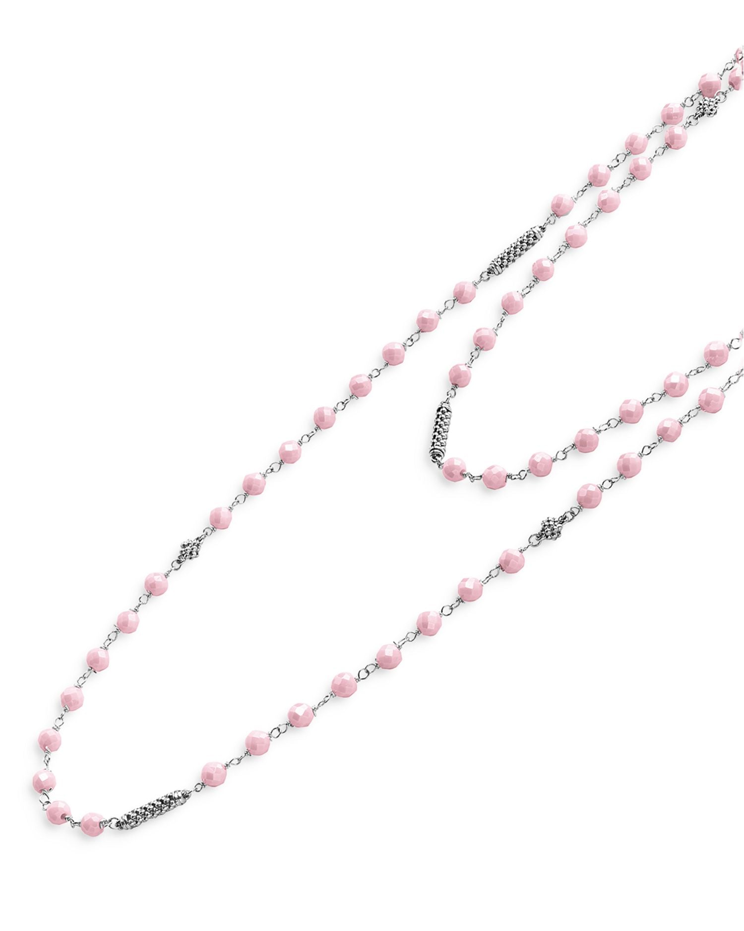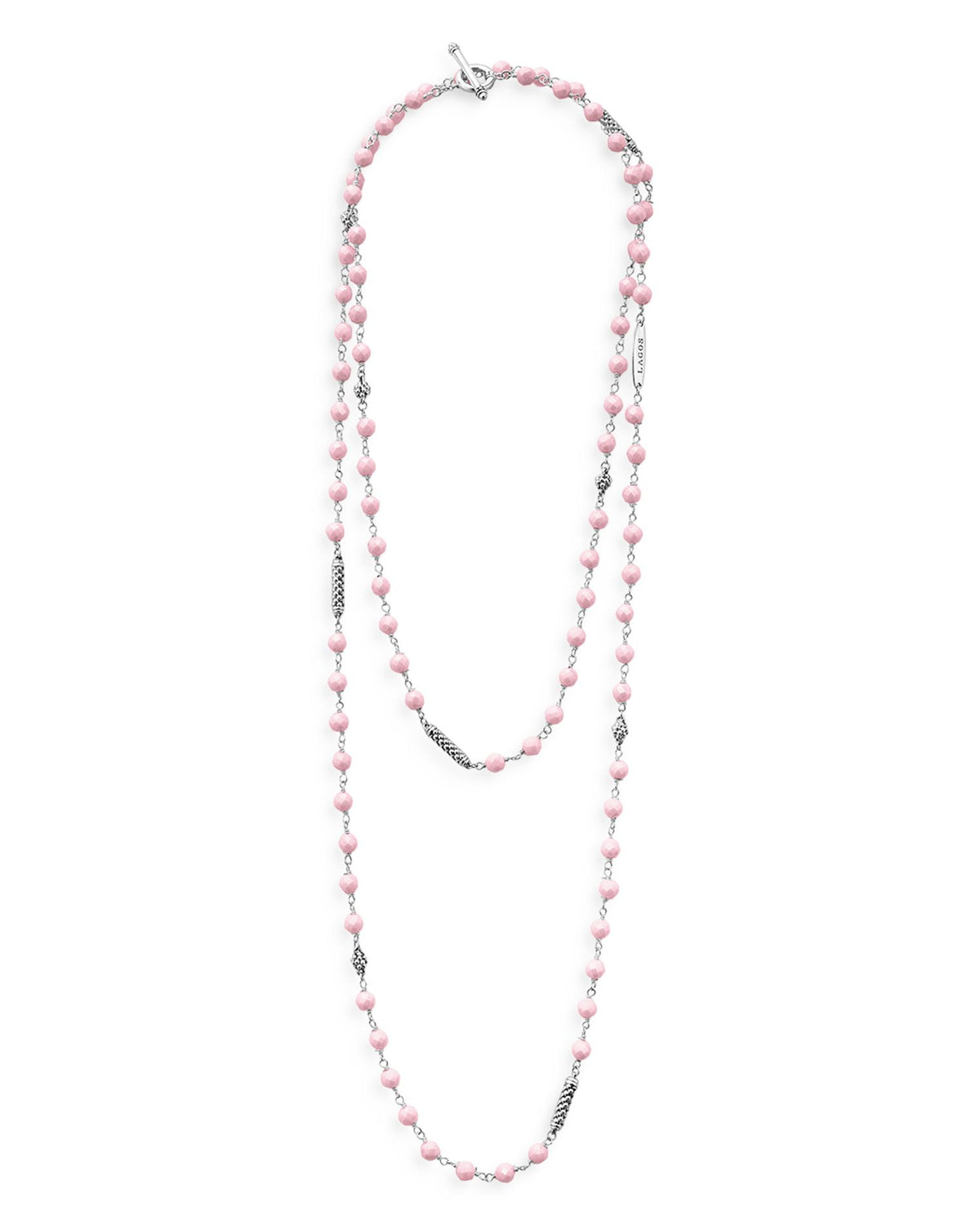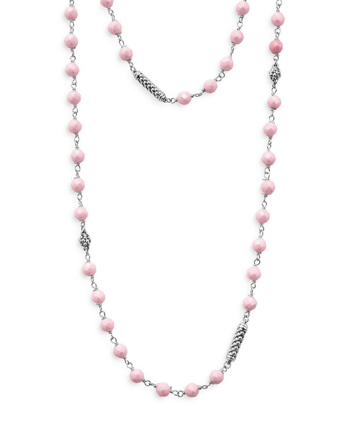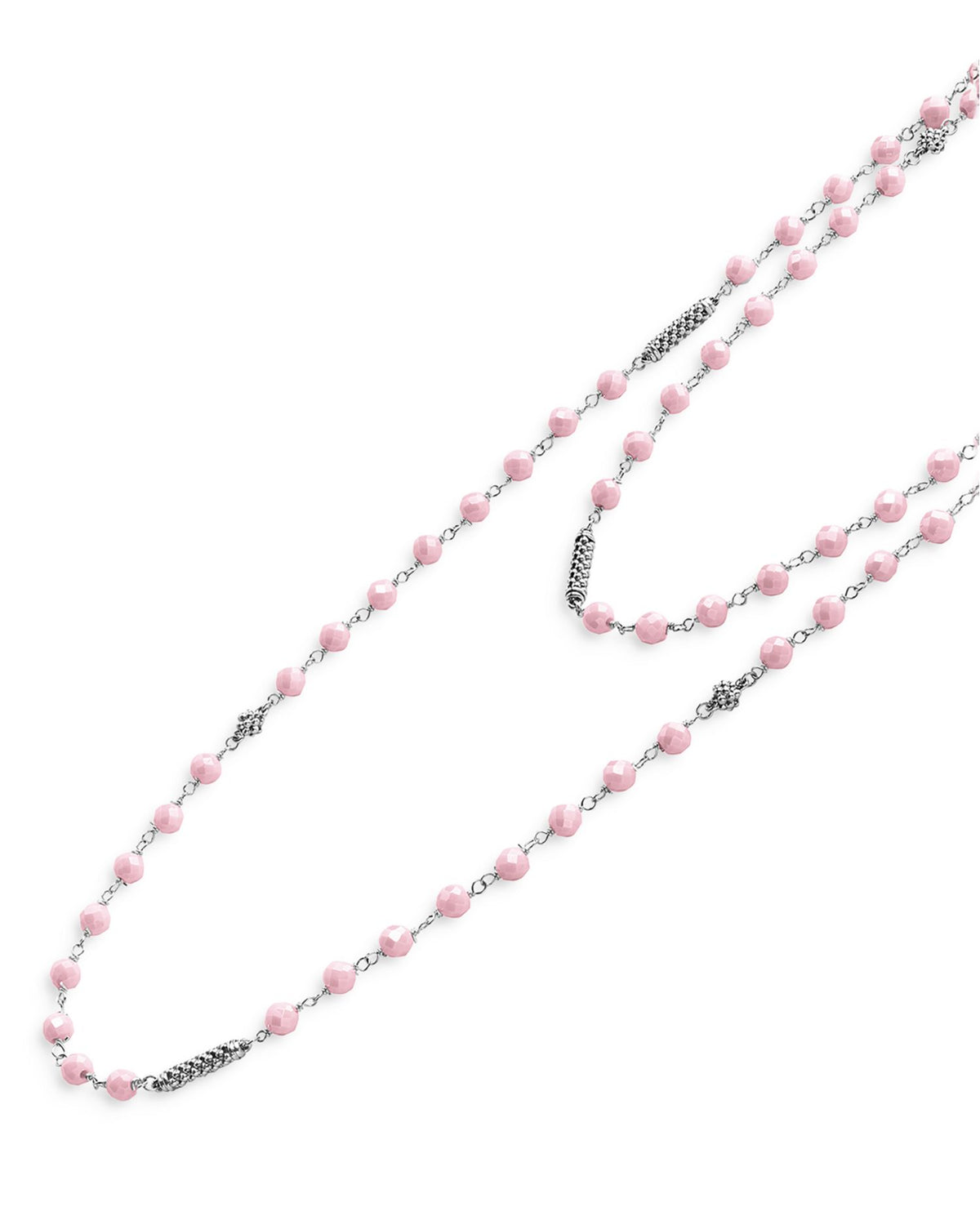 This Sterling Silver Caviar Icon Pink Ceramic Bead Station Necklace, 34" by LAGOS from the Caviar Icon collection combines playful pink ceramic beads with signature sterling silver Caviar details. The long length and toggle clasp make it ideal for layering or wearing alone.