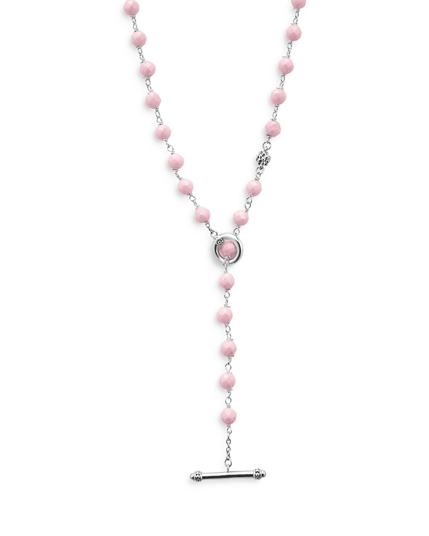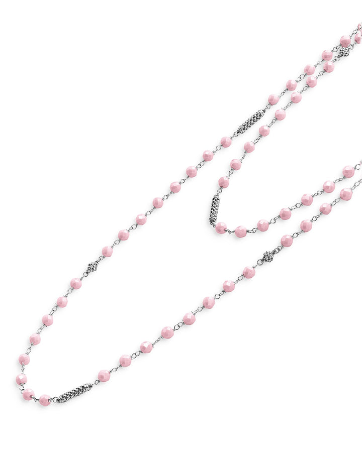 Sterling Silver Caviar Icon Pink Ceramic Bead Station Necklace, 34"