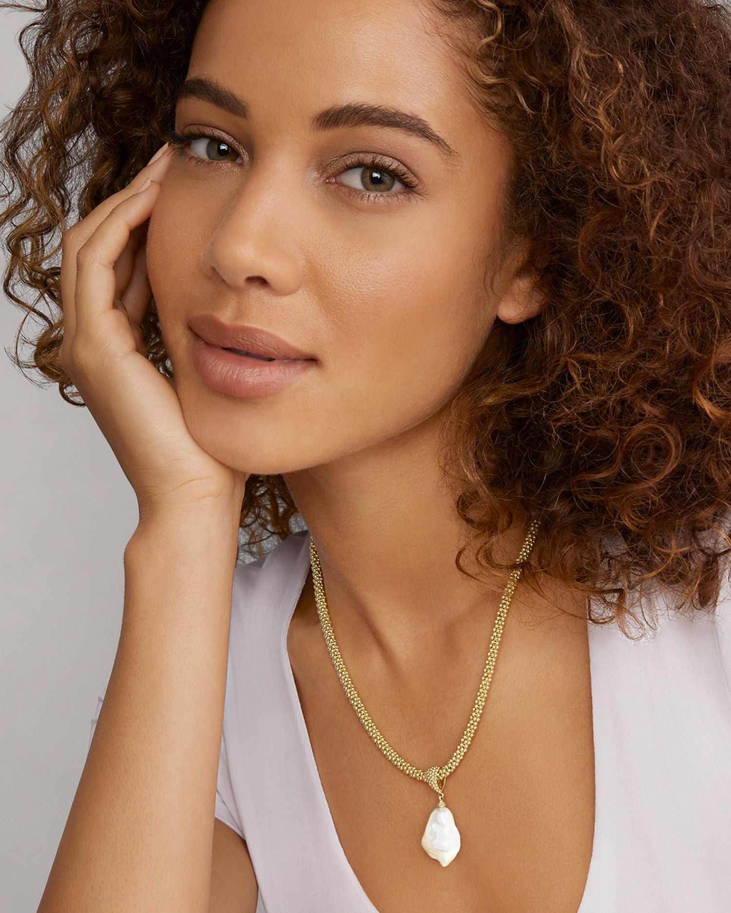 18K Yellow Gold Luna Cultured Freshwater Baroque Pearl Caviar Bead Pendant