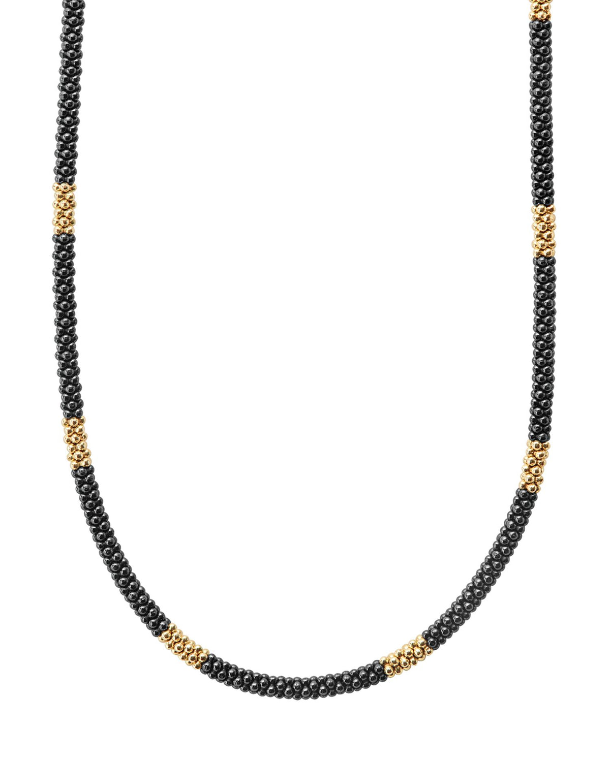 Ceramic & 18K Yellow Gold Black Caviar Necklace, 18'