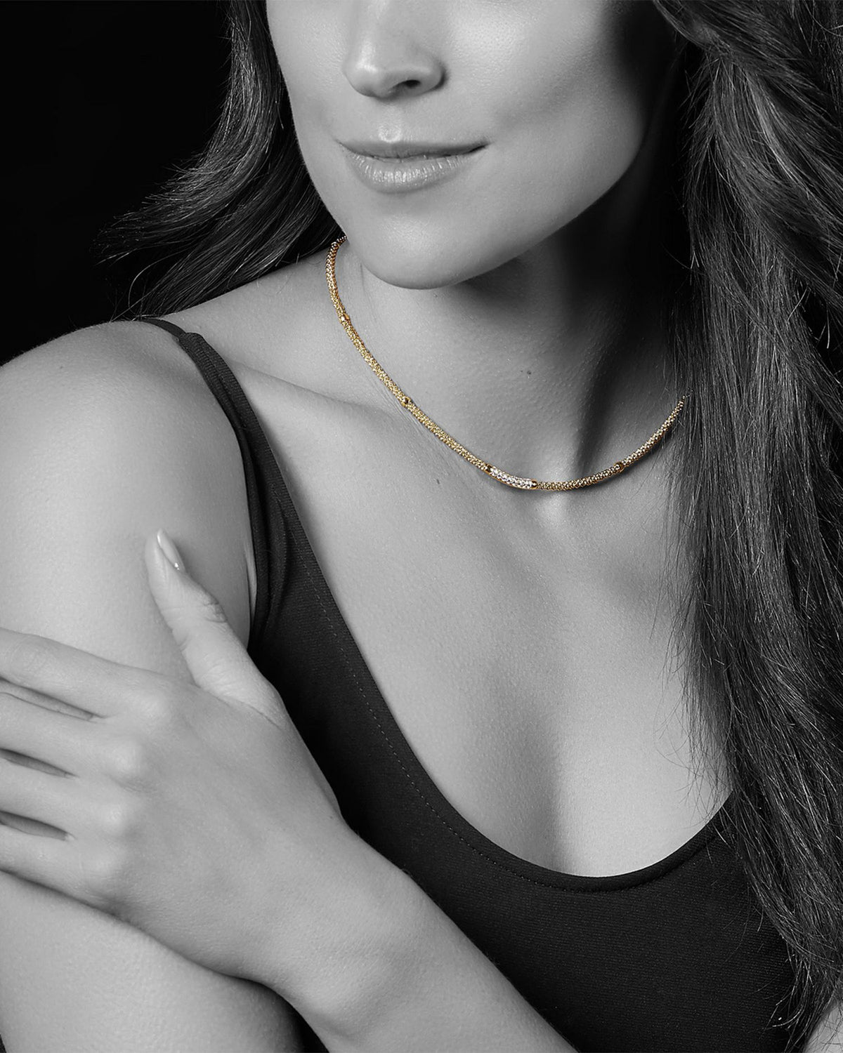 18K Yellow Gold Caviar Beaded Necklace with Diamonds, 16"