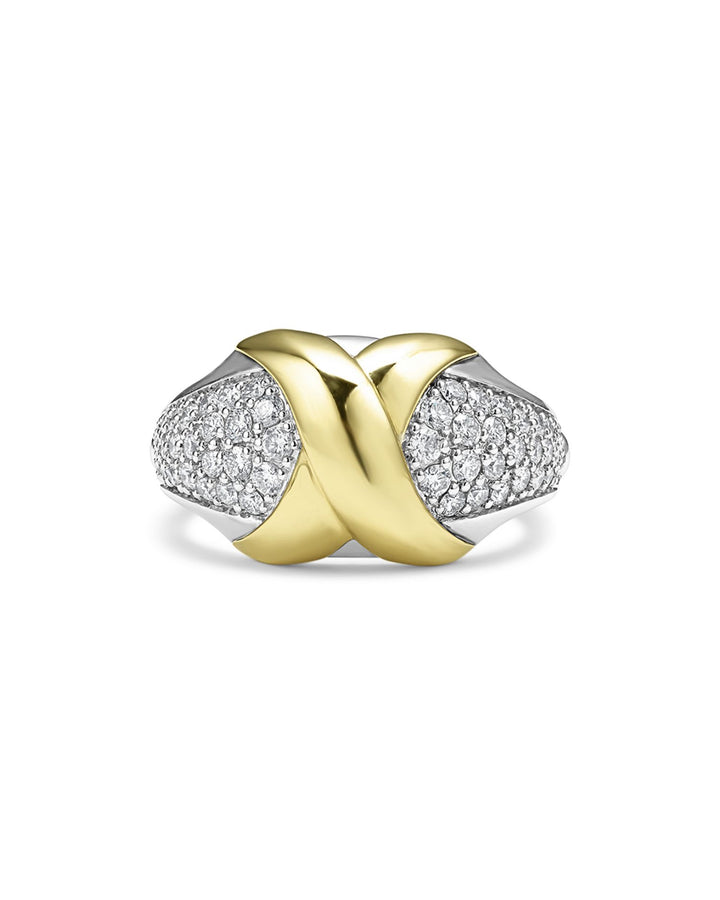 18K Yellow Gold & Sterling Silver Embrace Diamond Pavé X Ring