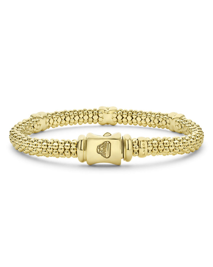 18K Yellow Gold Embrace Diamond Triple X Caviar Bead Bracelet