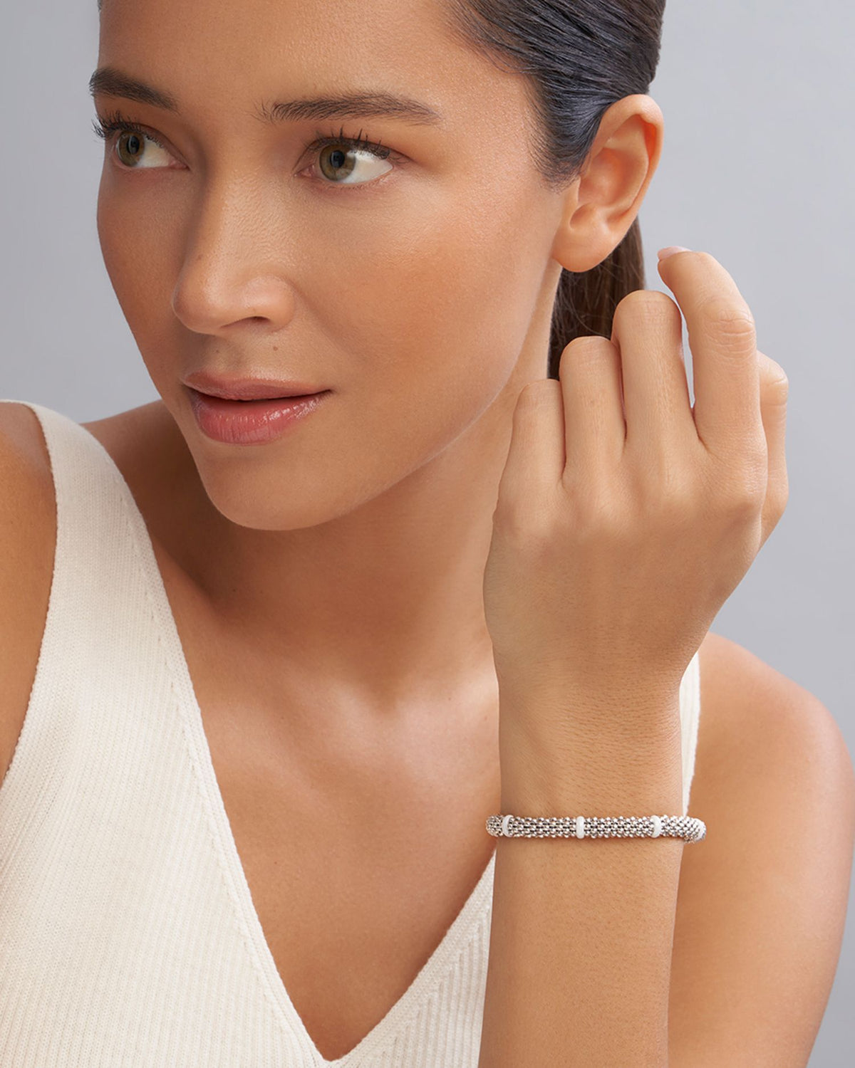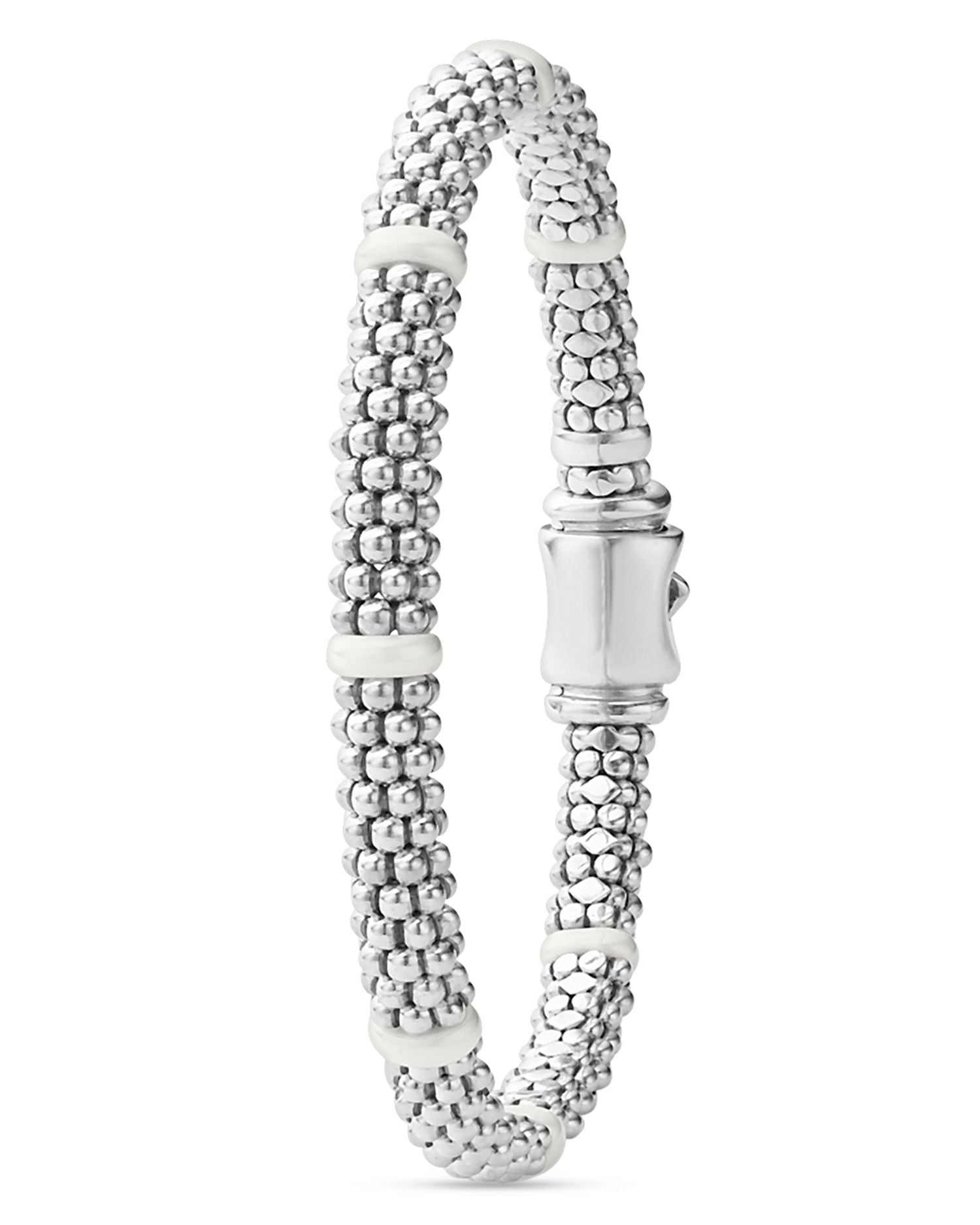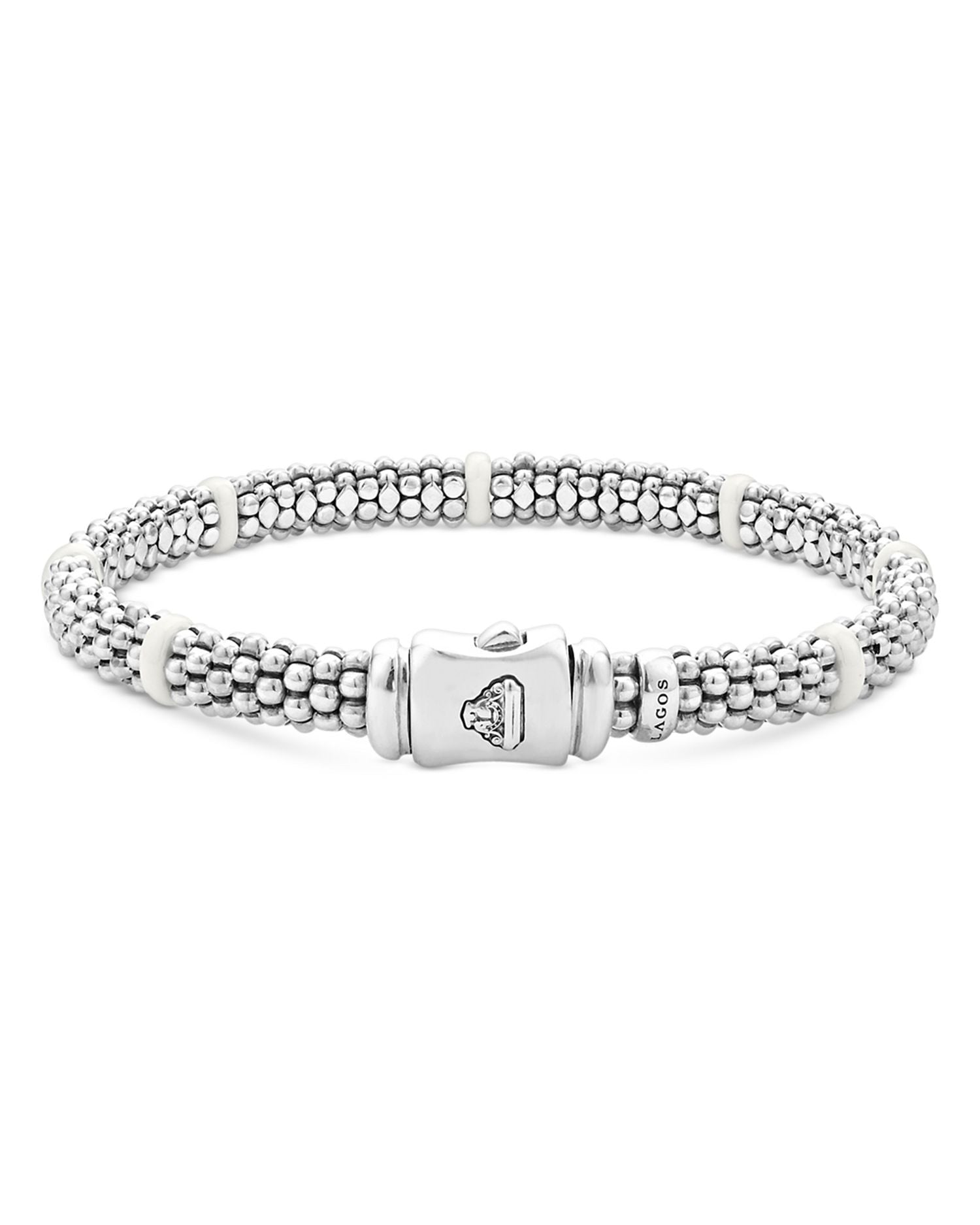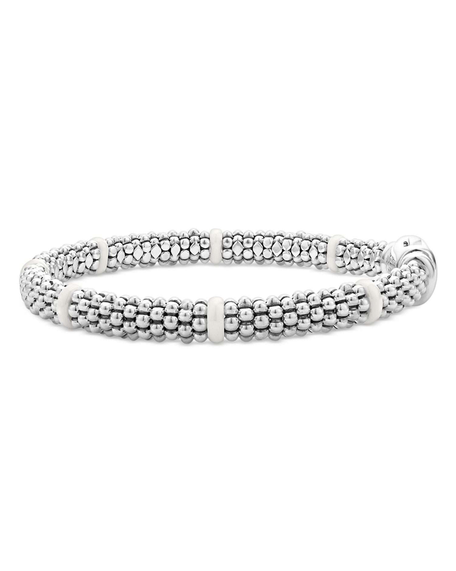 These Sterling Silver White Caviar Ceramic Beaded Bracelets by LAGOS offer a chic and stylish addition to any jewelry collection. From the White Caviar collection, they feature elegant white ceramic beads that add a contemporary edge to the classic Caviar design. Perfect for layering or wearing individually for a minimalist look.