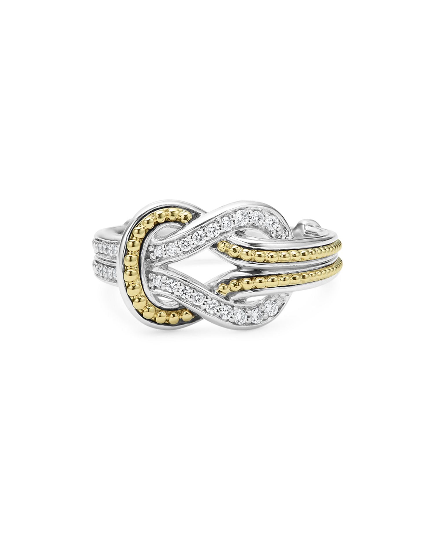 This 18K Yellow Gold & Sterling Silver Newport Diamond Knot Statement Ring by LAGOS is a dramatic masterpiece from the Newport collection. Featuring a striking two-tone diamond knot motif, this ring is a sophisticated statement piece for any jewelry collection.