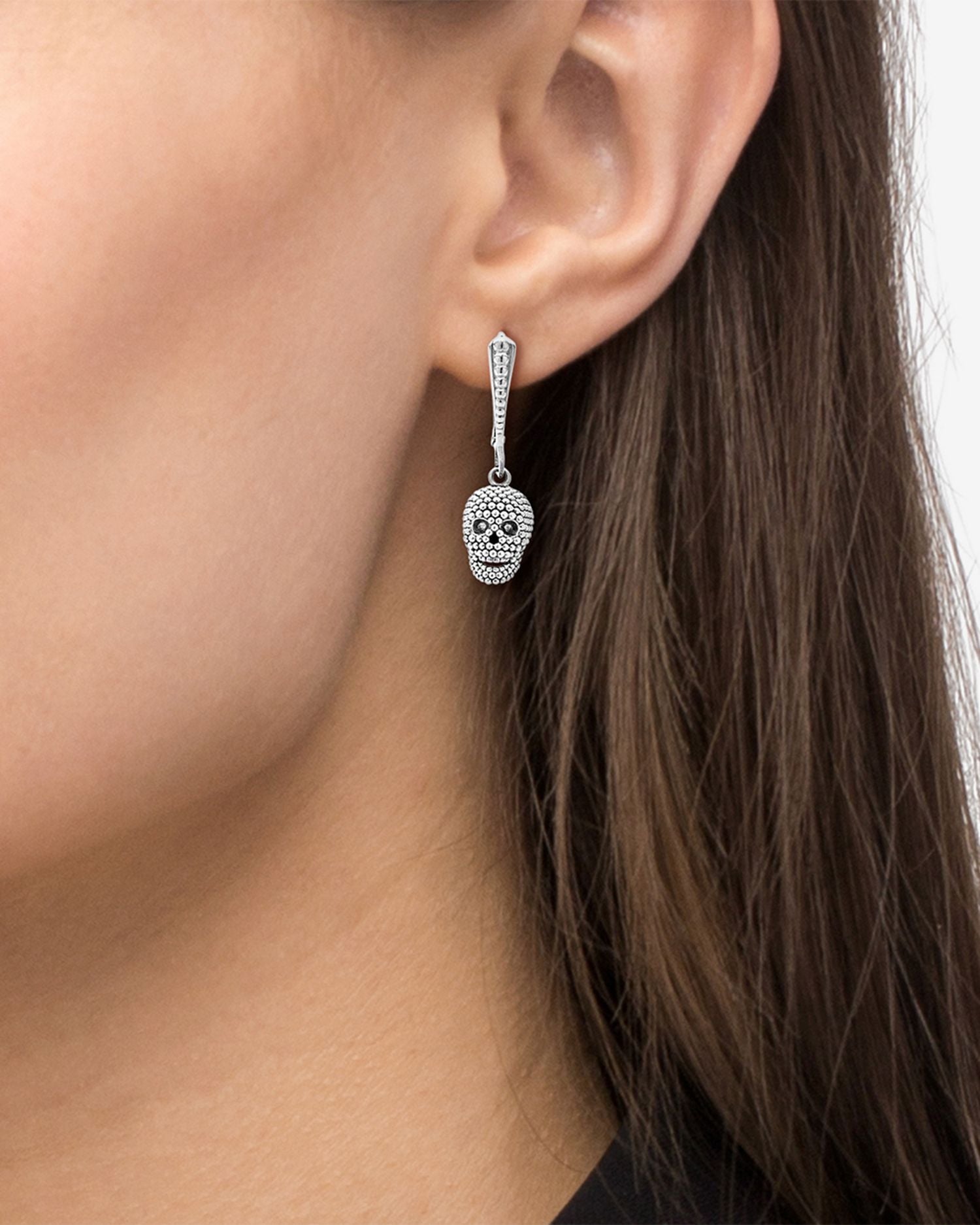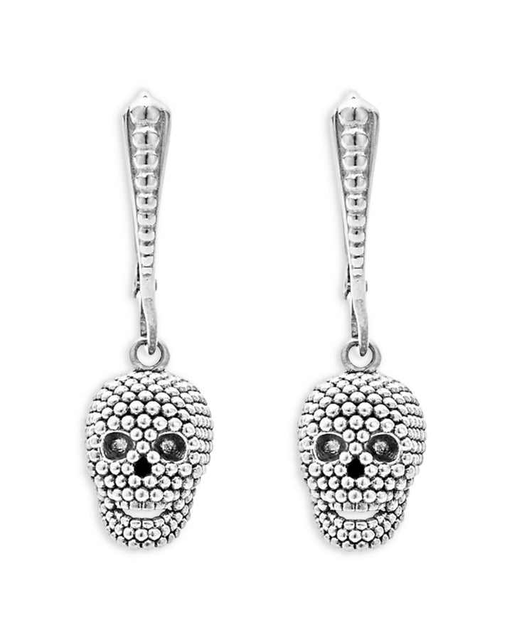 These Sterling Silver Rare Wonders Caviar Bead Skull Drop Earrings by LAGOS are a bold and unique statement. From the Rare Wonders collection, they feature polished Caviar-beaded skull motifs, combining edgy design with the brand’s signature craftsmanship.