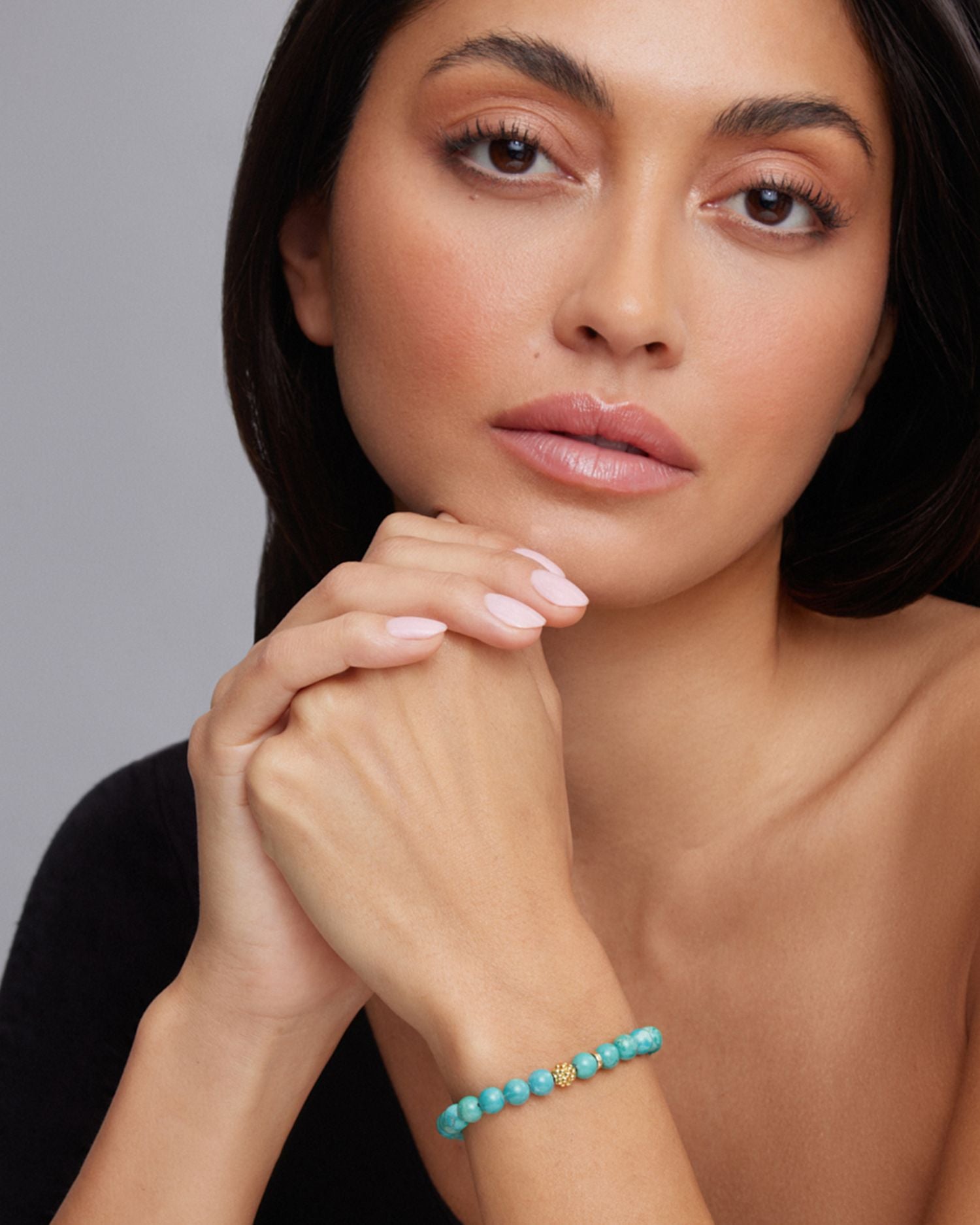 Crafted in turquoise gemstones with 18K gold Caviar beaded stations. Medium+ size fits 6.75"-7.25". Items are sold separately.