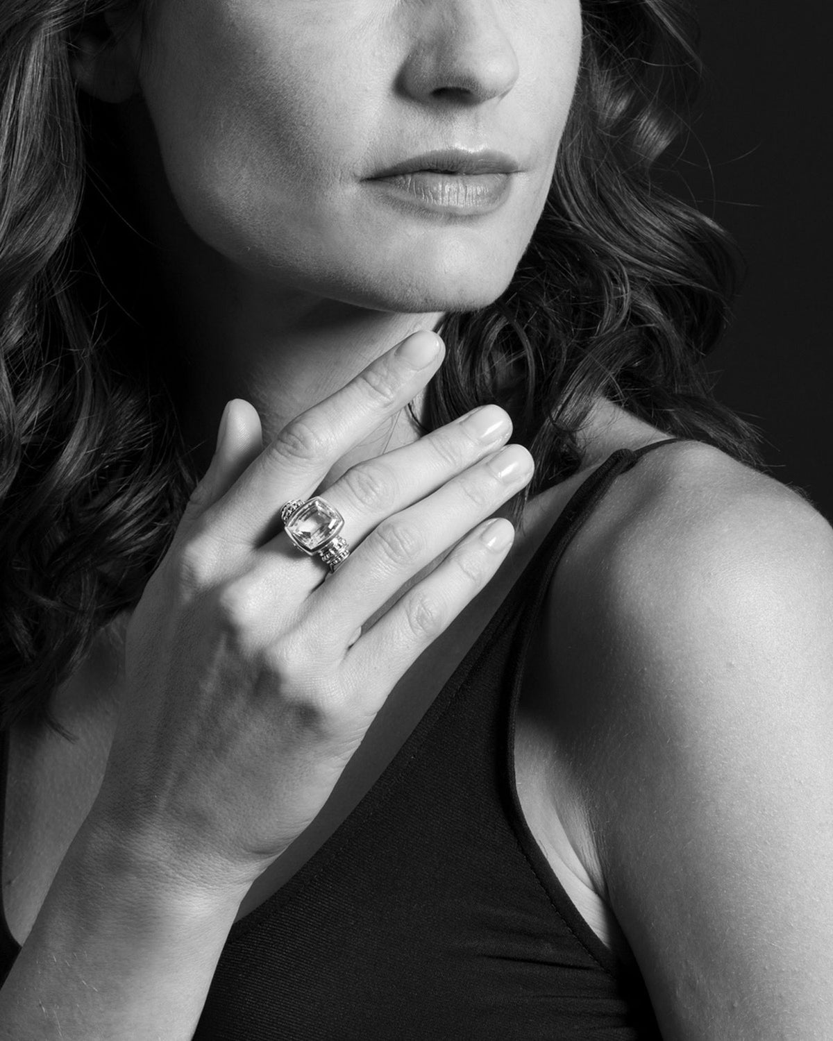 18K Gold and Sterling Silver Caviar Color Medium Rings with Gemstone