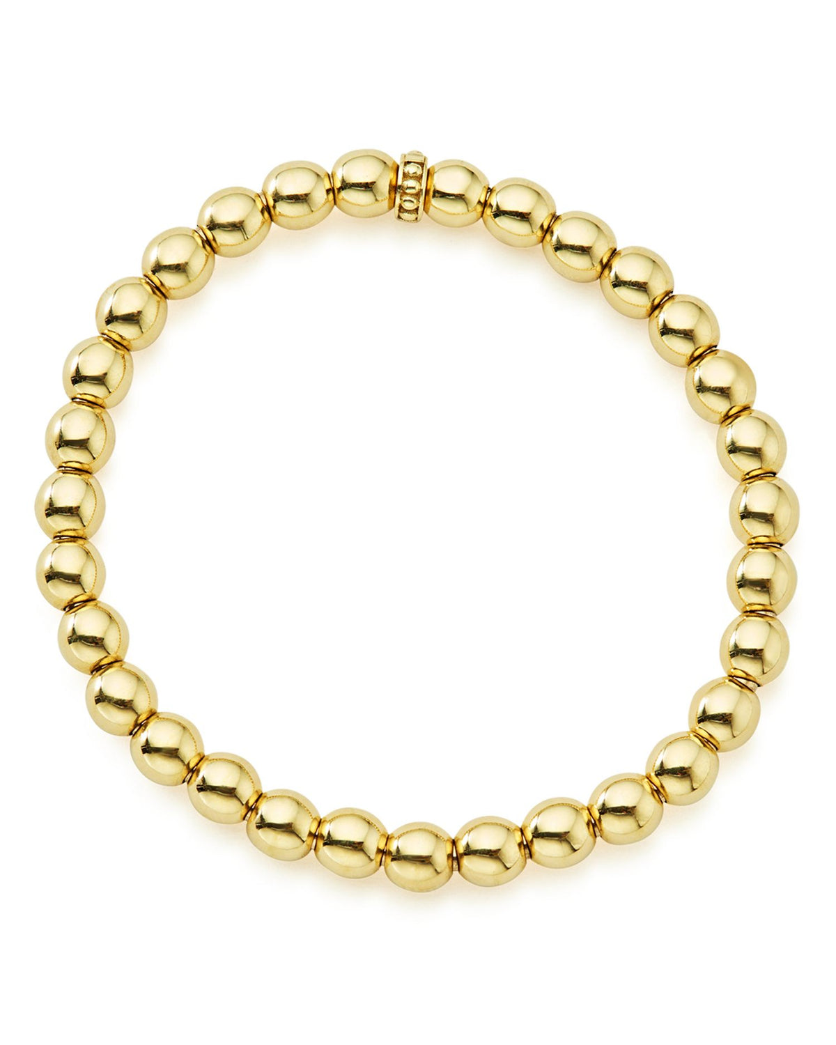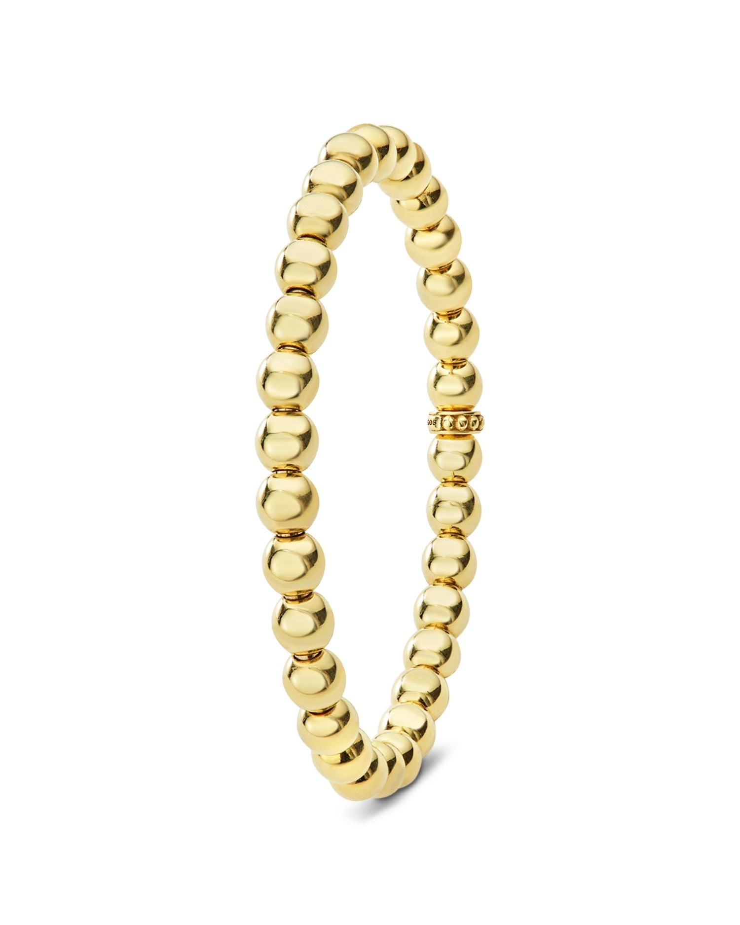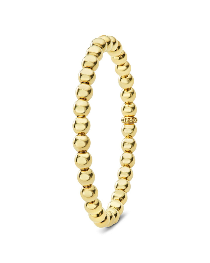 This Caviar Gold Collection 18K Gold Beaded Bracelet by LAGOS is a luxurious addition to the Caviar Gold collection. Featuring signature 18K gold Caviar beading, this 6mm-wide bracelet offers a timeless design with a stretch fit for comfort and versatility. Perfect for stacking or wearing solo.