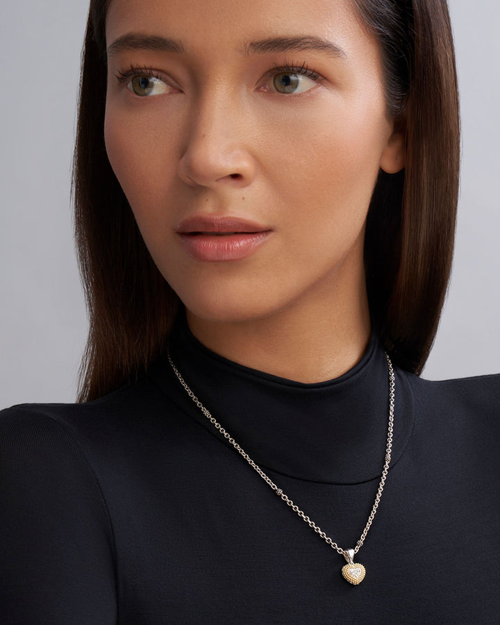 18K Yellow Gold & Sterling Silver Caviar Lux Diamond Heart Pendant Necklace, 16'