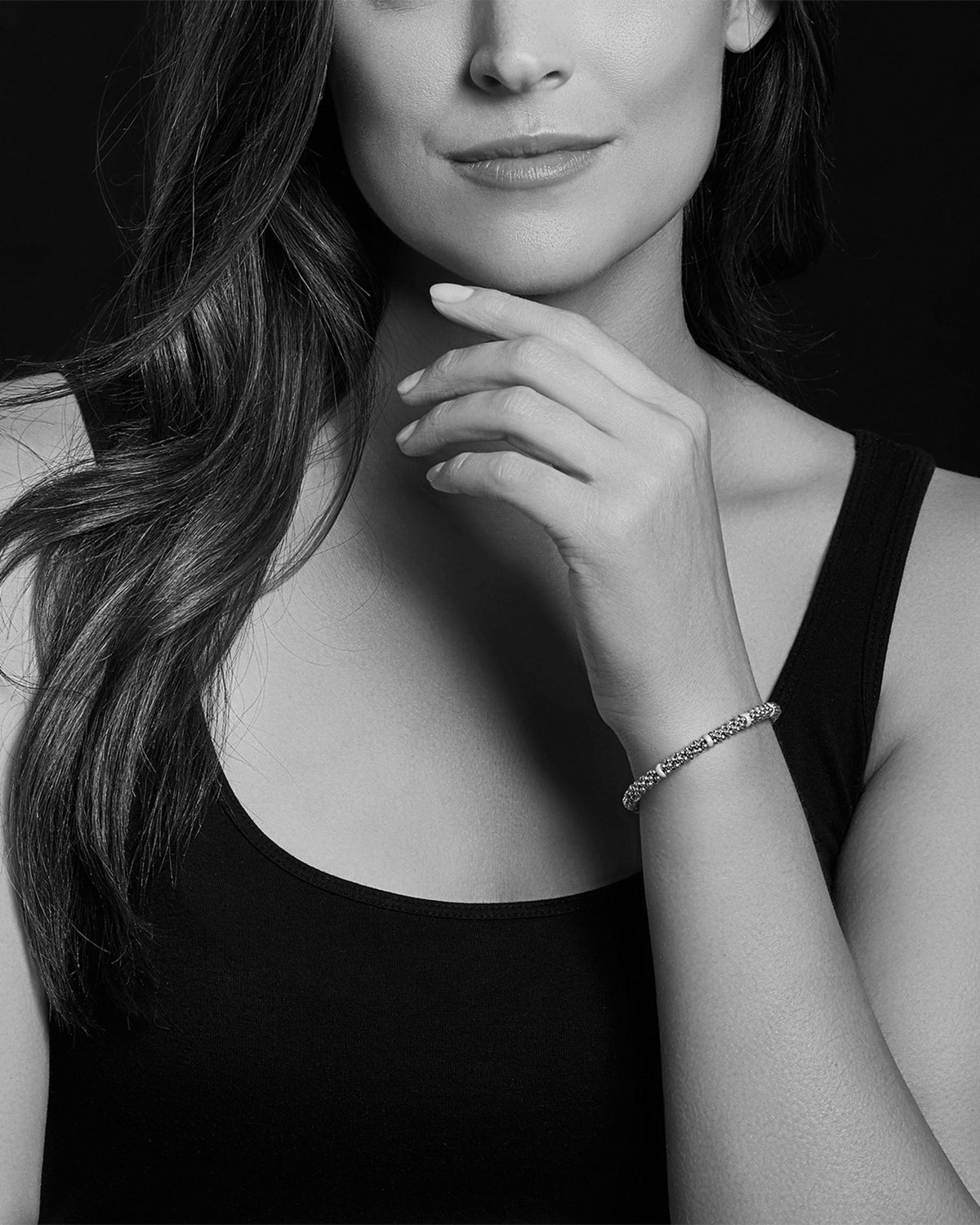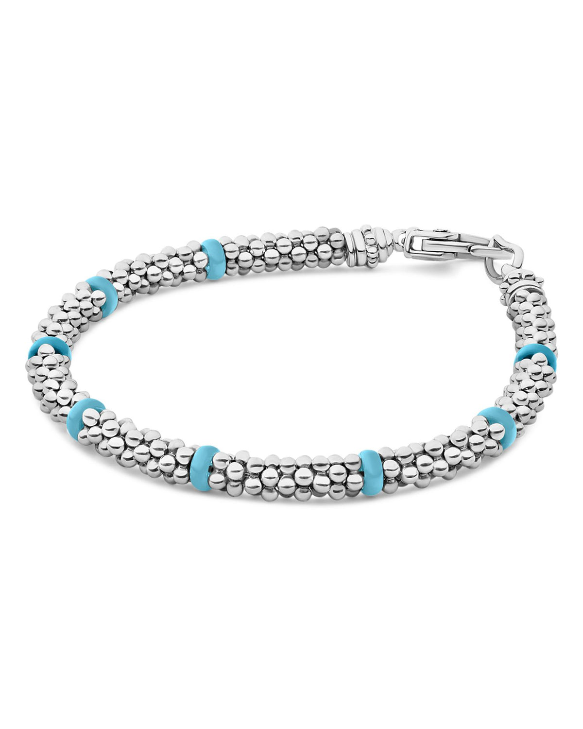 Handcrafted in sterling silver with blue ceramic beads. Bracelet measures 7.5 inches in length and secures with a lobster clasp featuring the LAGOS crest. Some silver components may be rhodium-coated to maintain brilliance.