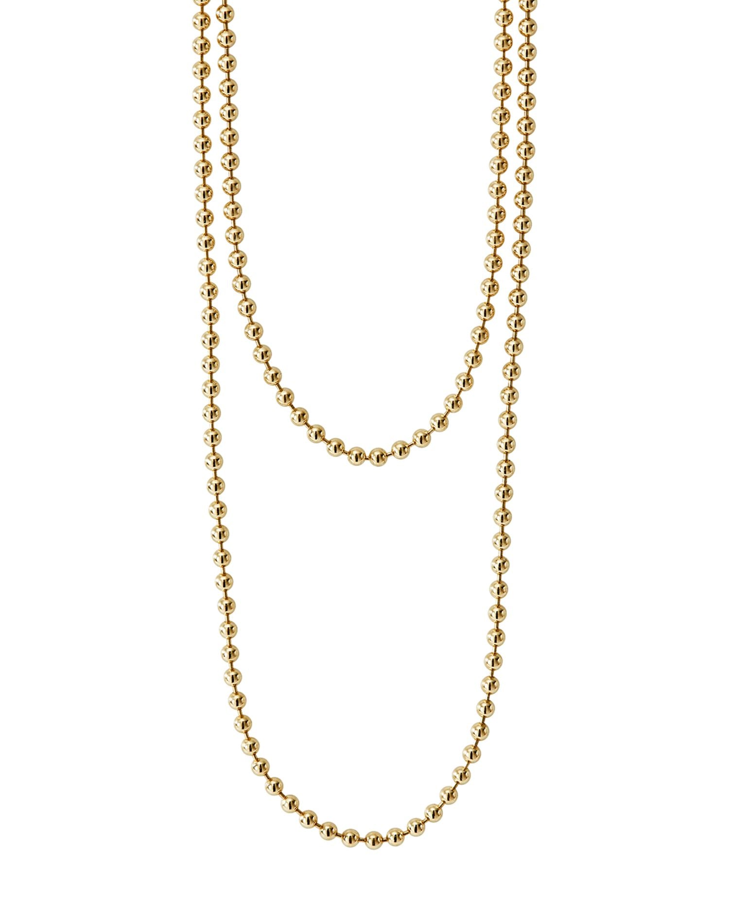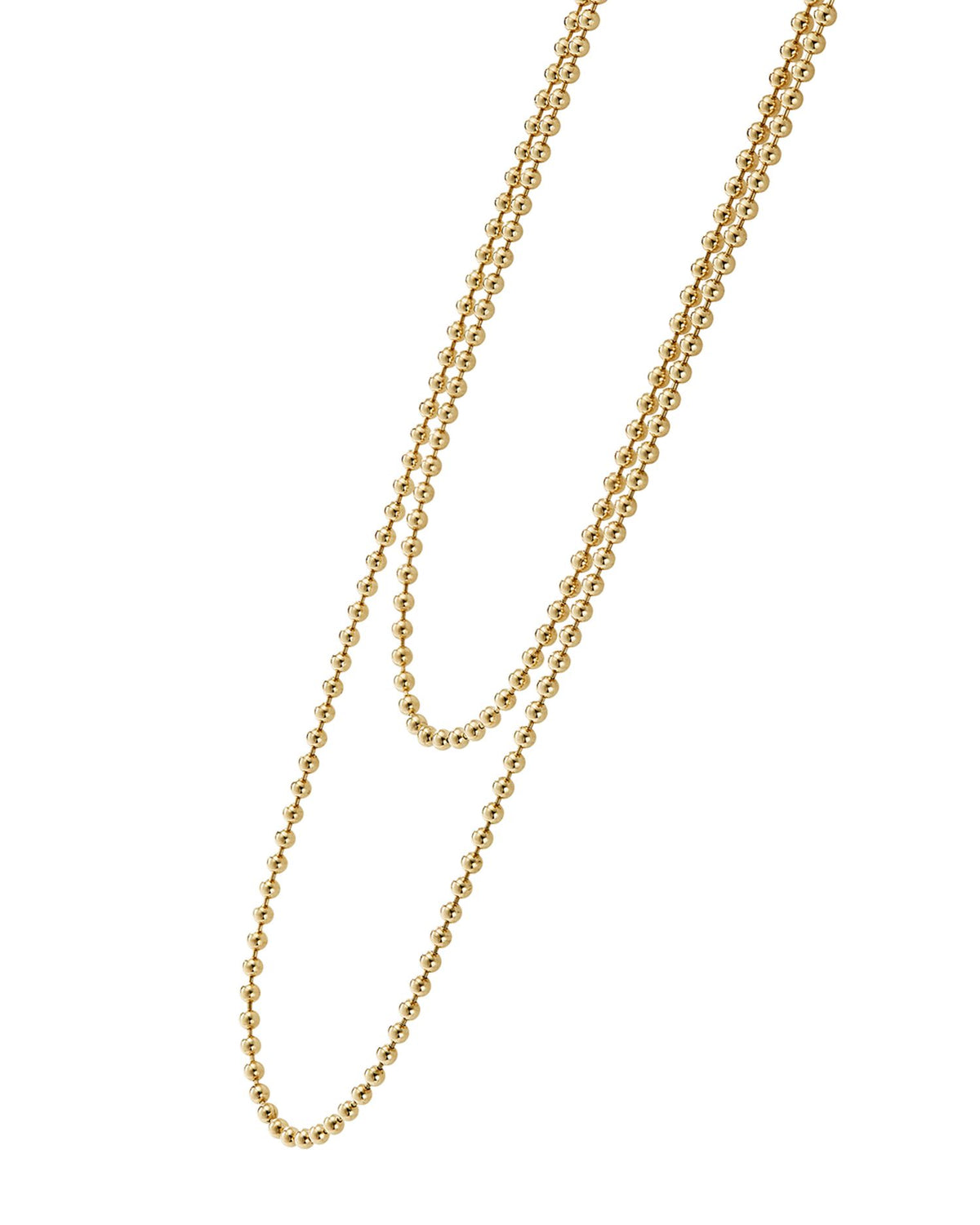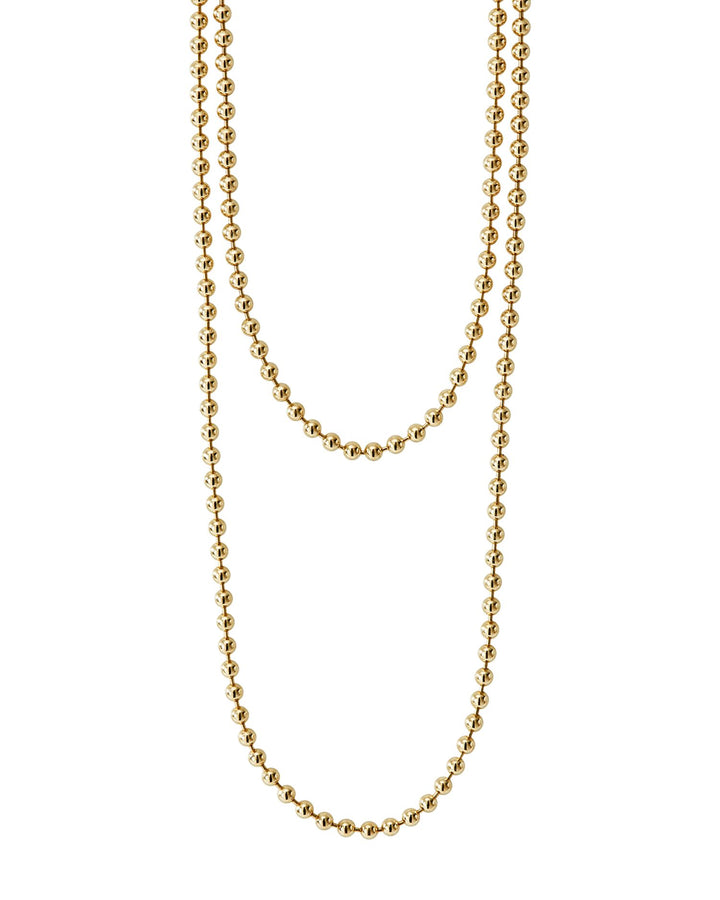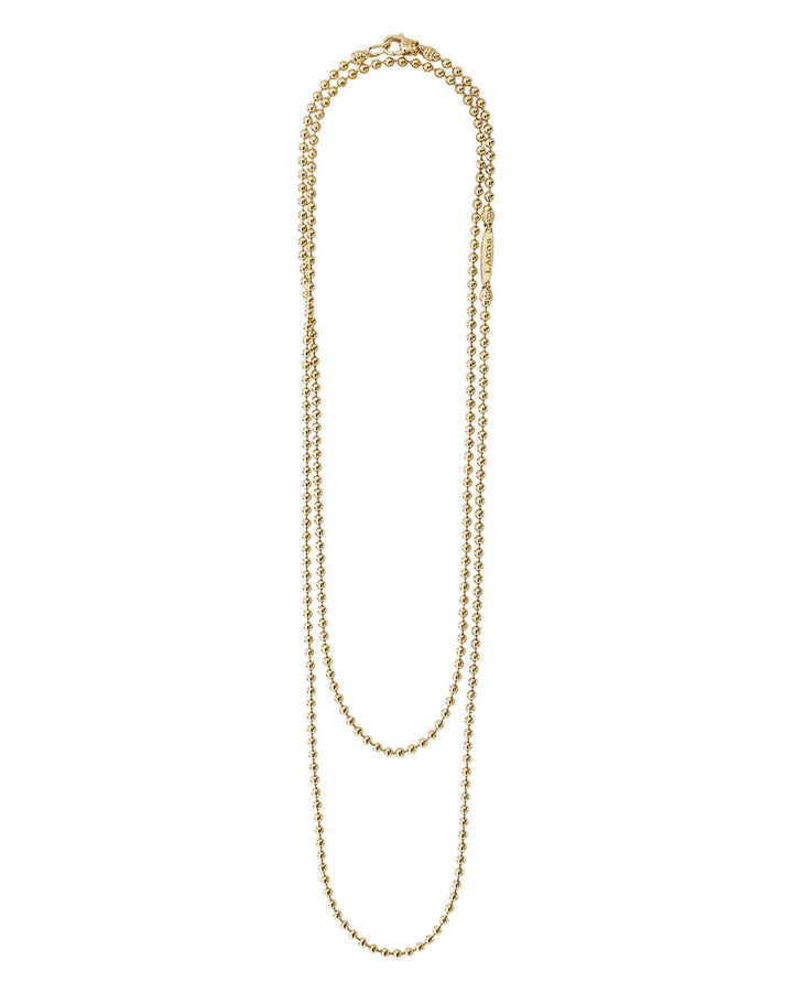 This Caviar Gold Collection 18K Gold Ball Chain Necklace by LAGOS is a luxurious addition to the Caviar Gold collection. Featuring a 34-inch 18K gold ball chain, this versatile necklace is perfect for layering or wrapping for a double-layered look. Finished with a signature lobster clasp detailing the LAGOS crest.
