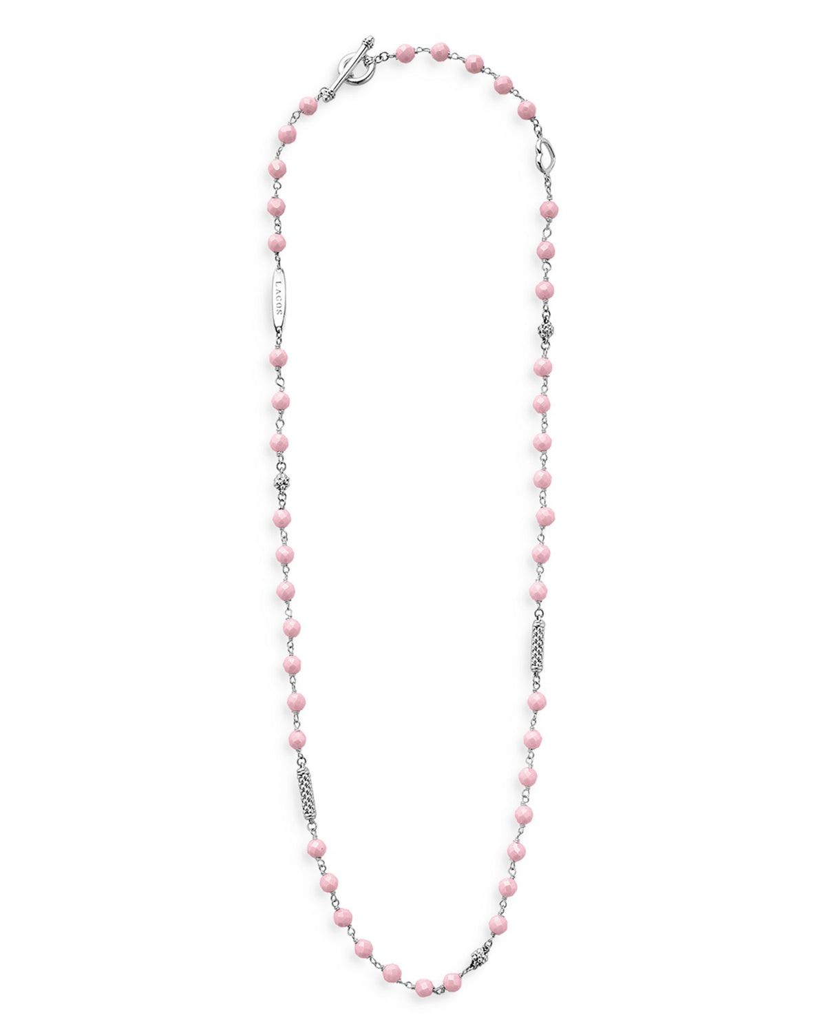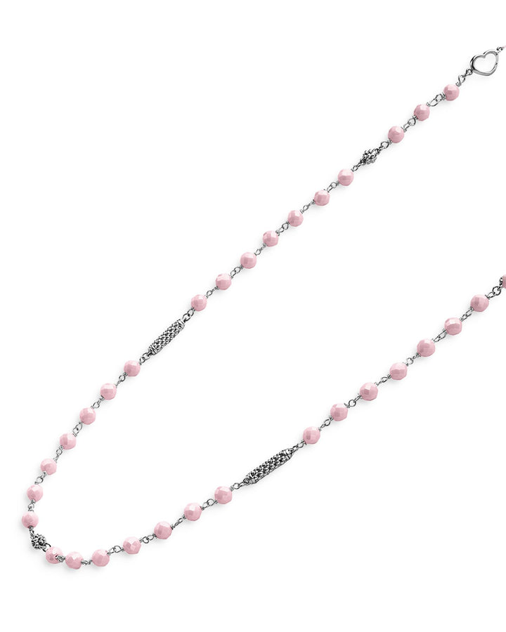 Sterling Silver Caviar Icon Pink Ceramic Bead Station Collar Necklace, 16-18"