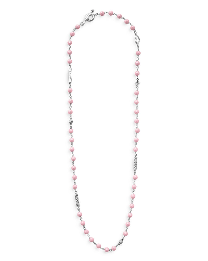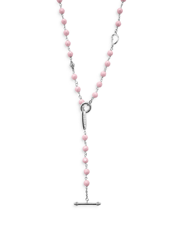 This Sterling Silver Caviar Icon Pink Ceramic Bead Station Collar Necklace by LAGOS is a bold statement from the Pink Caviar collection. Featuring pink ceramic beads and sterling silver Caviar detailing, this collar necklace is finished with a toggle clasp for a sophisticated yet playful design.