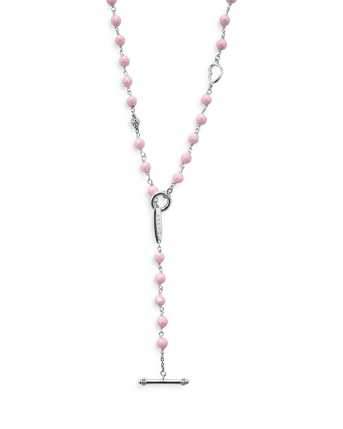 Handcrafted in sterling silver with pink ceramic beads. Necklace measures 16-18 inches in adjustable length and secures with a toggle clasp closure. Some silver components may be rhodium-coated for added brilliance.