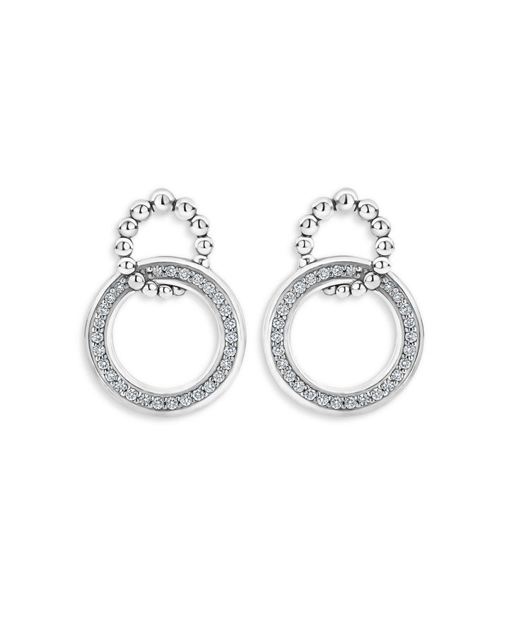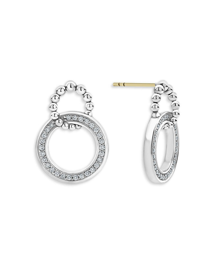 These Sterling Silver Caviar Spark Diamond Interlocking Circle Drop Earrings by LAGOS are a sparkling addition to the Caviar Spark collection. Featuring interlocking bead and diamond circles, these drop earrings exude timeless elegance, making them a perfect choice for both day and evening wear.
