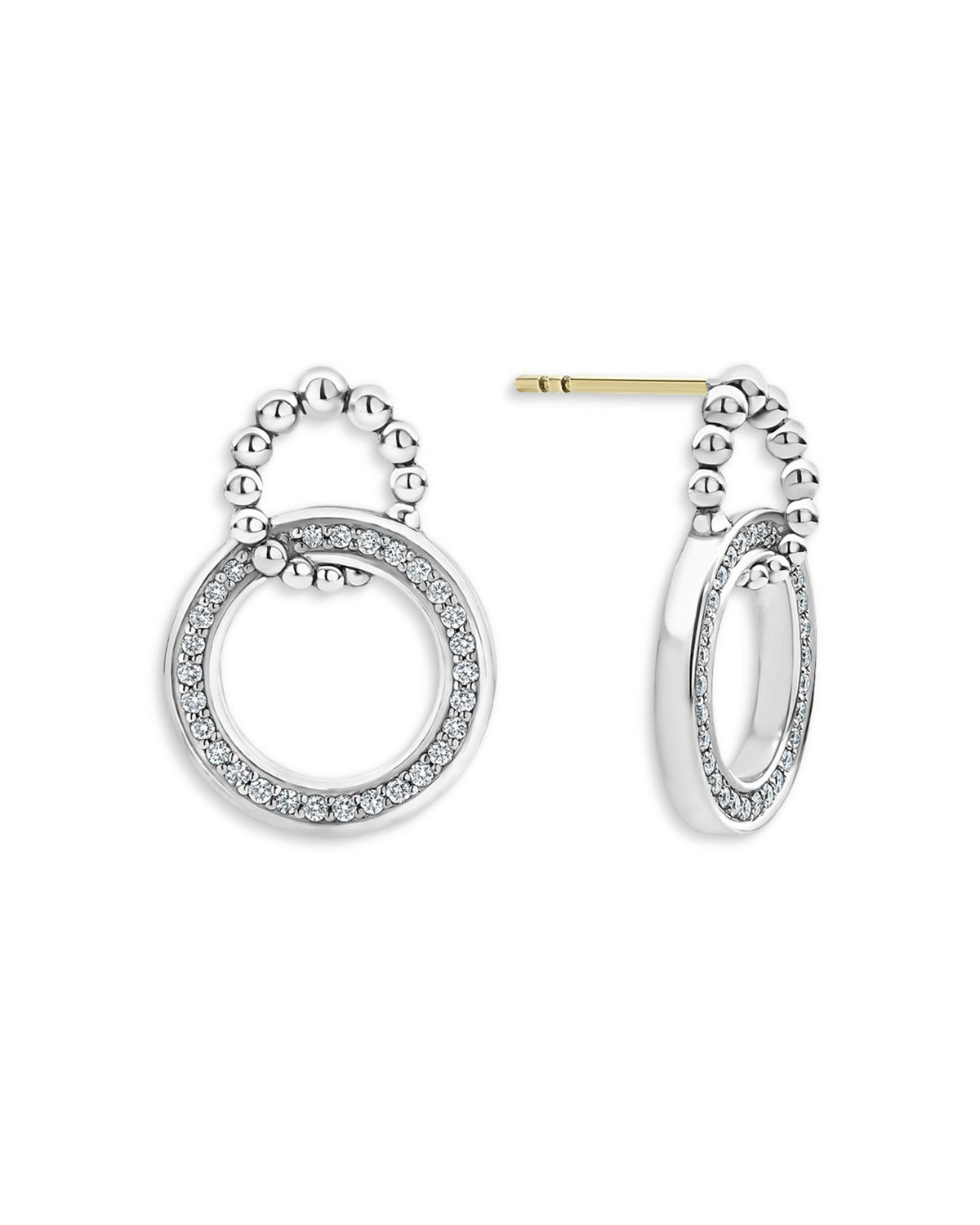 Sterling Silver Caviar Spark Diamond Interlocking Circle Drop Earrings