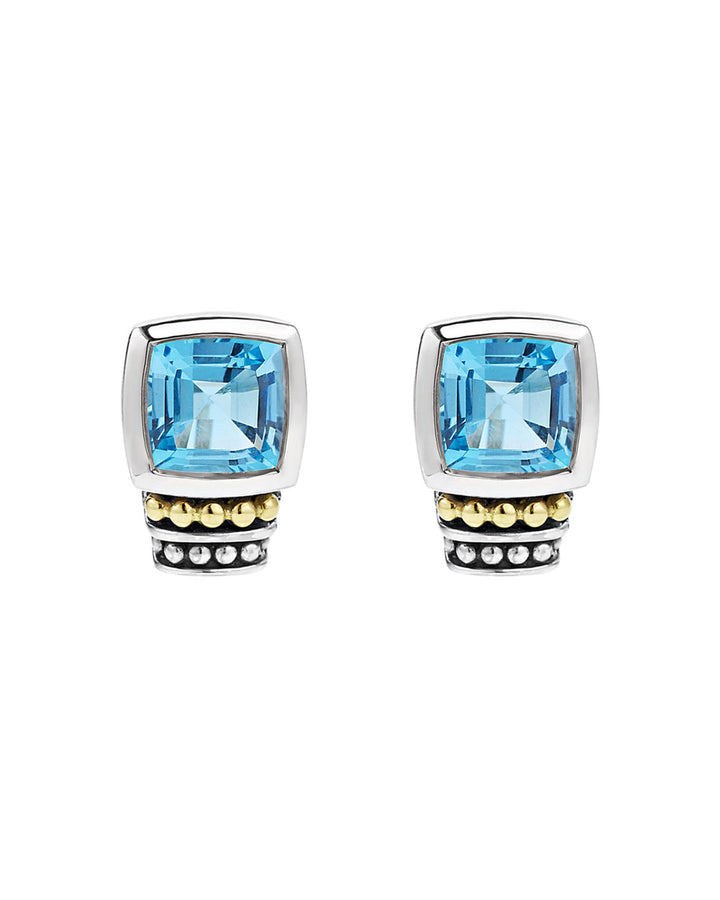 These 18K Gold and Sterling Silver Caviar Color Gemstone Stud Earrings by LAGOS radiate vibrant beauty with richly hued gemstones framed by rows of sterling silver and 18K gold Caviar beading. A versatile design perfect for any occasion, sold separately to allow for personalized selection.