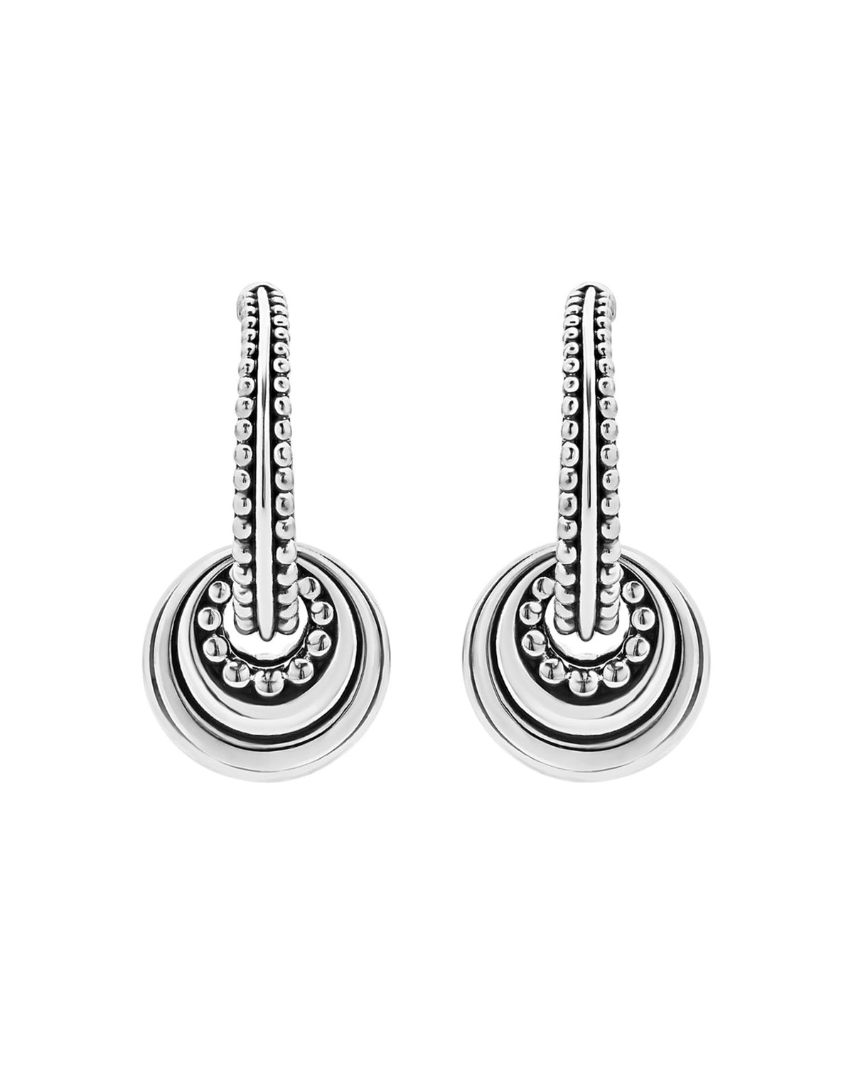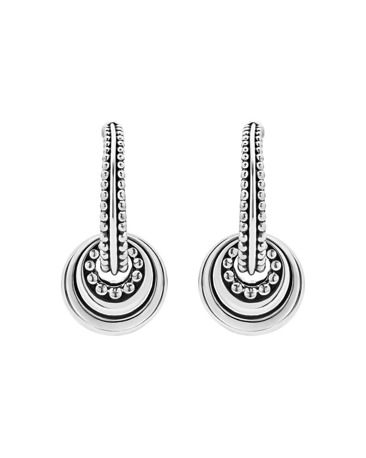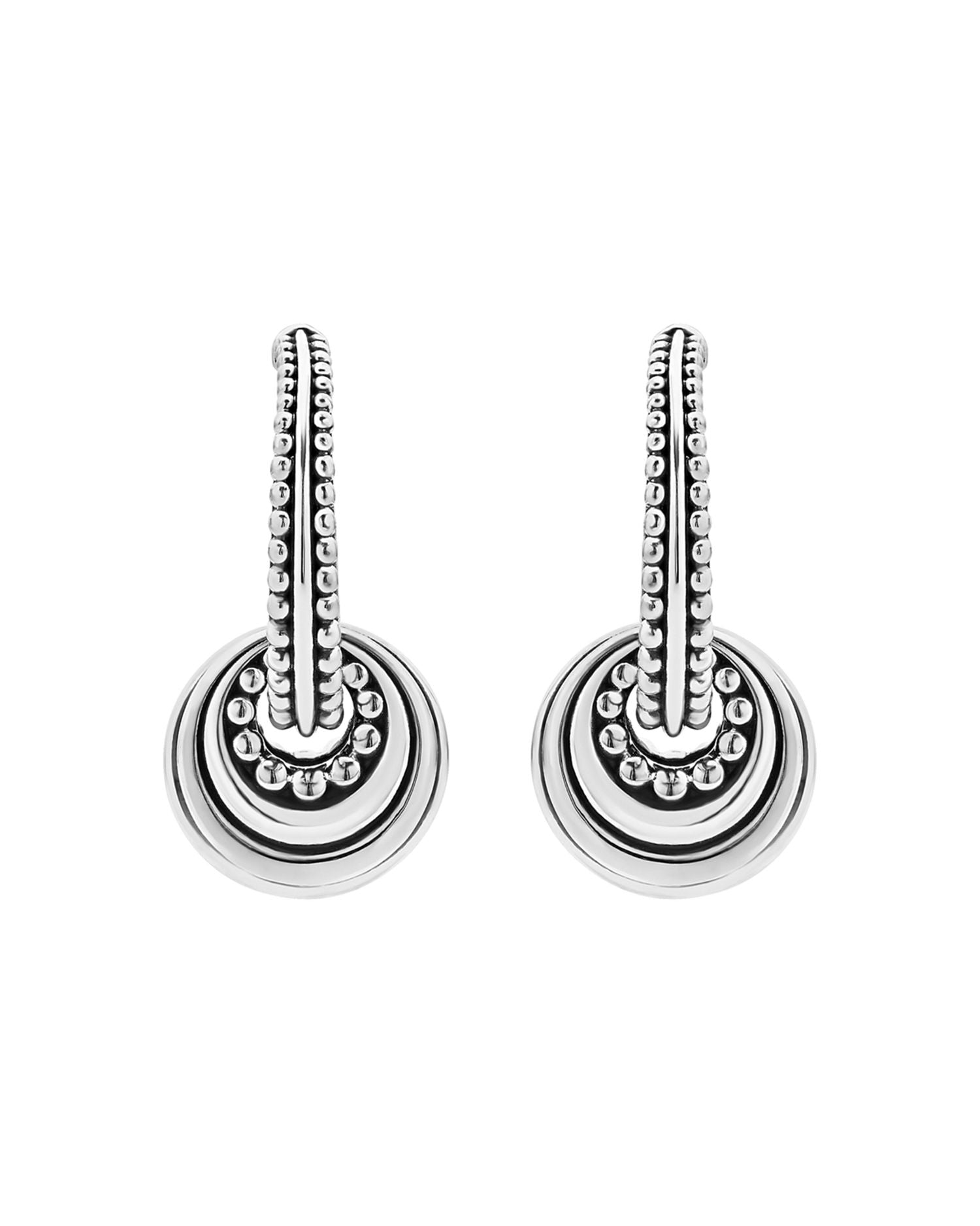 These Sterling Silver Signature Caviar Fluted Disc Hoop Earrings by LAGOS feature the brand’s signature Caviar beading accented with fluted disc details for a refined yet playful design. From the Signature Caviar Collection, they add a unique touch to any look.