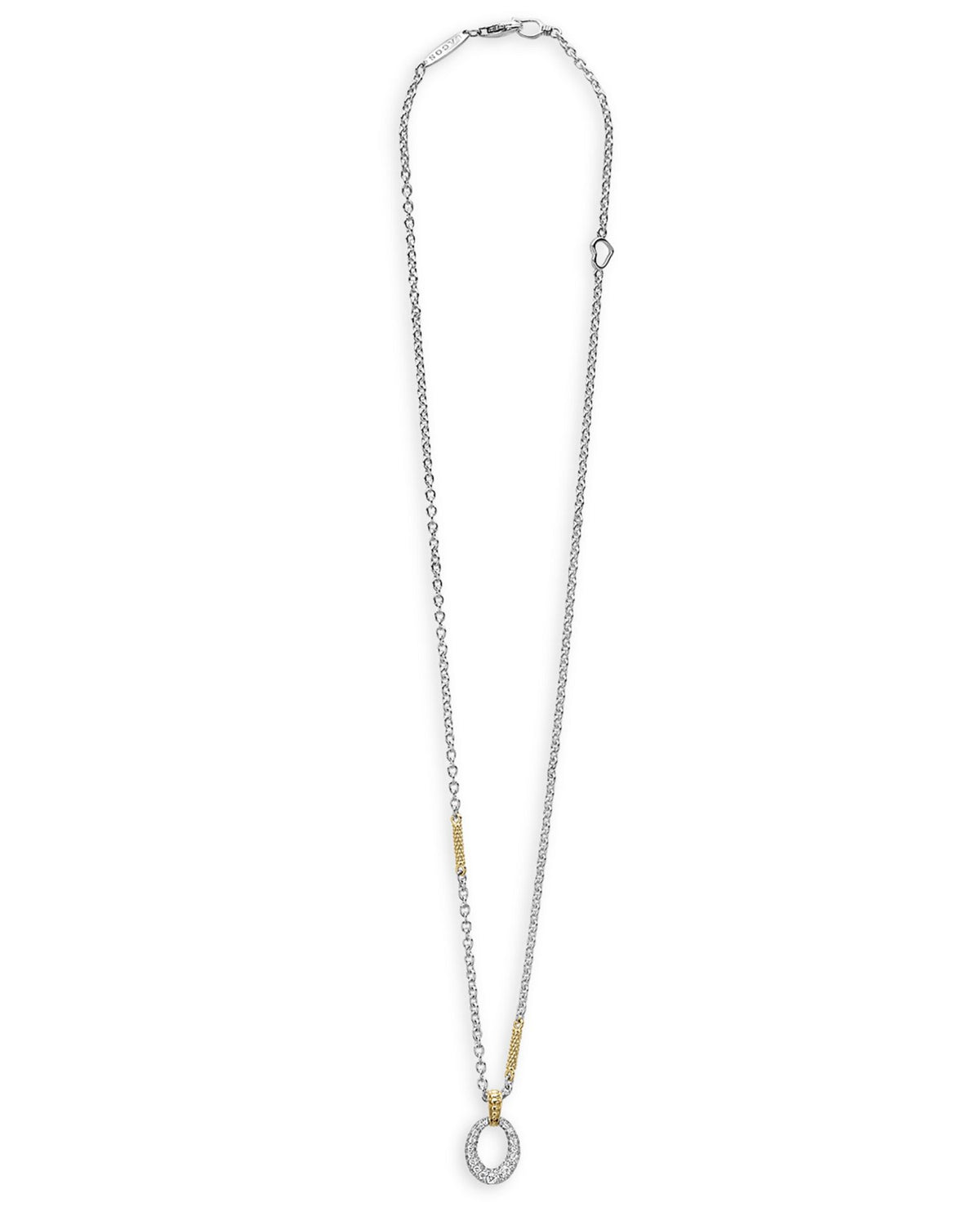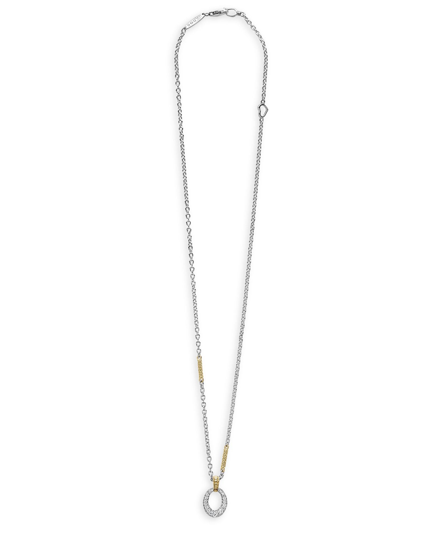 This 18K Yellow Gold & Sterling Silver Caviar Lux Oval Diamond Pendant Necklace by LAGOS combines sophistication and brilliance with a pavé diamond oval pendant and Caviar accents. From the Caviar Lux Collection, it’s an elegant choice for layering or wearing alone.
