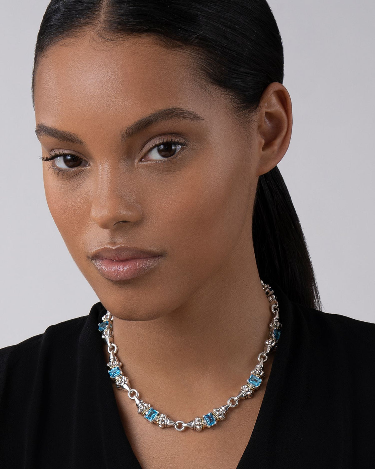 This 18K Yellow Gold & Sterling Silver Glacier Collar Necklace by LAGOS offers sleek sophistication with its minimalist design. From the Glacier Collection, this collar necklace is a versatile piece, perfect for adding a touch of elegance to both casual and formal looks.