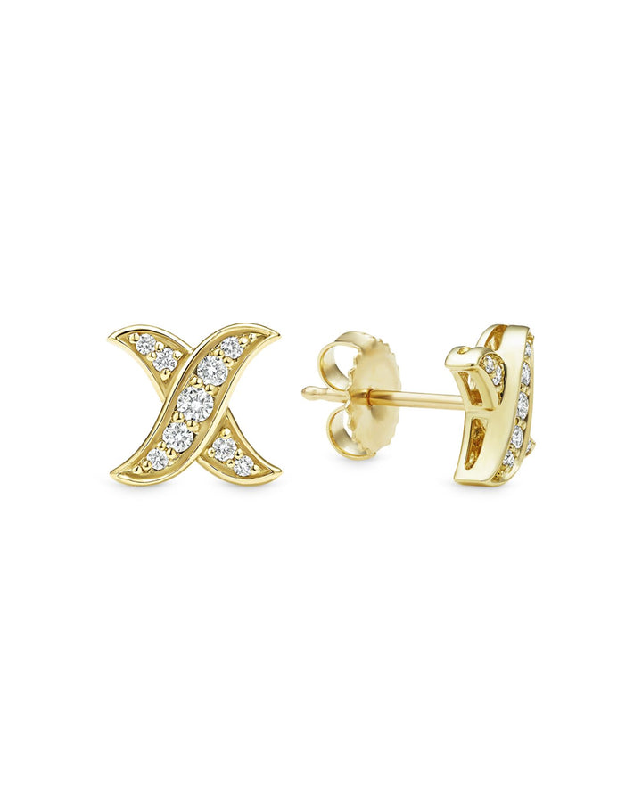 18K Yellow Gold Embrace Diamond X Stud Earrings