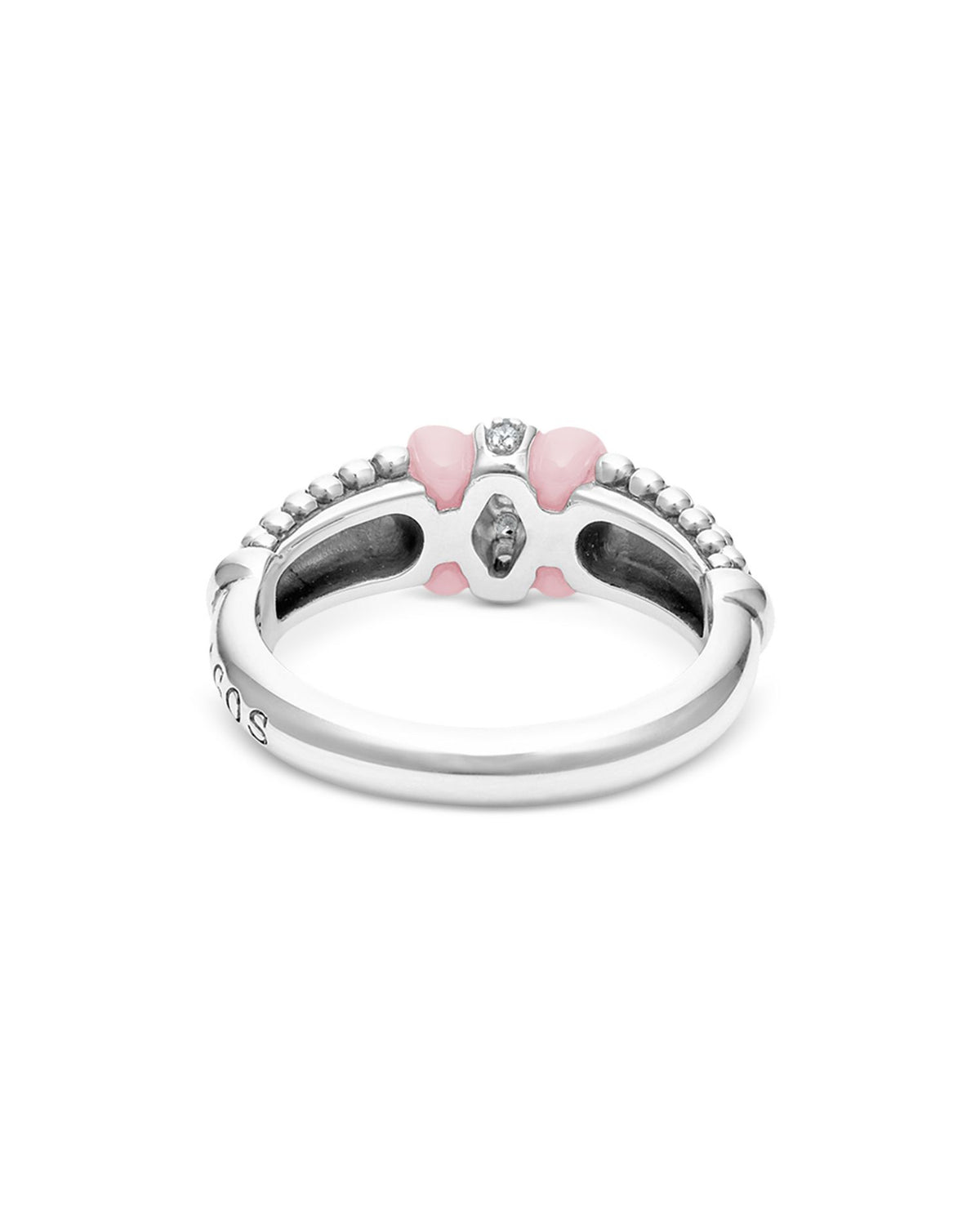 This Sterling Silver Pink Caviar Diamond & Pink Ceramic Bead Statement Ring by LAGOS is a playful yet sophisticated design. From the Pink Caviar Collection, the ring combines diamonds, pink ceramic, and sterling silver Caviar beading, making it an ideal piece for everyday glamour.