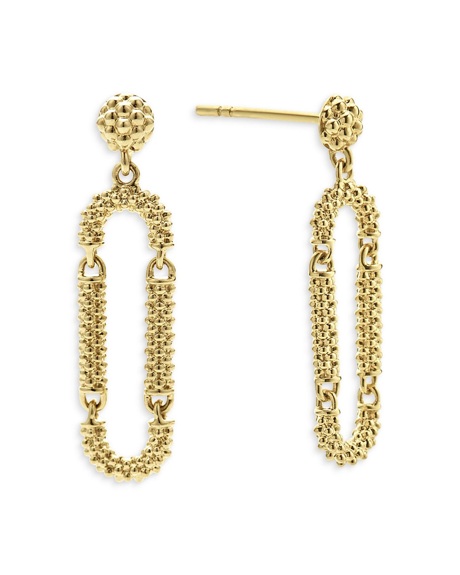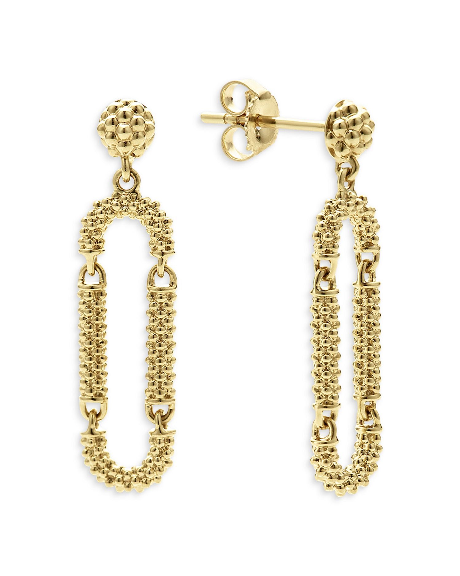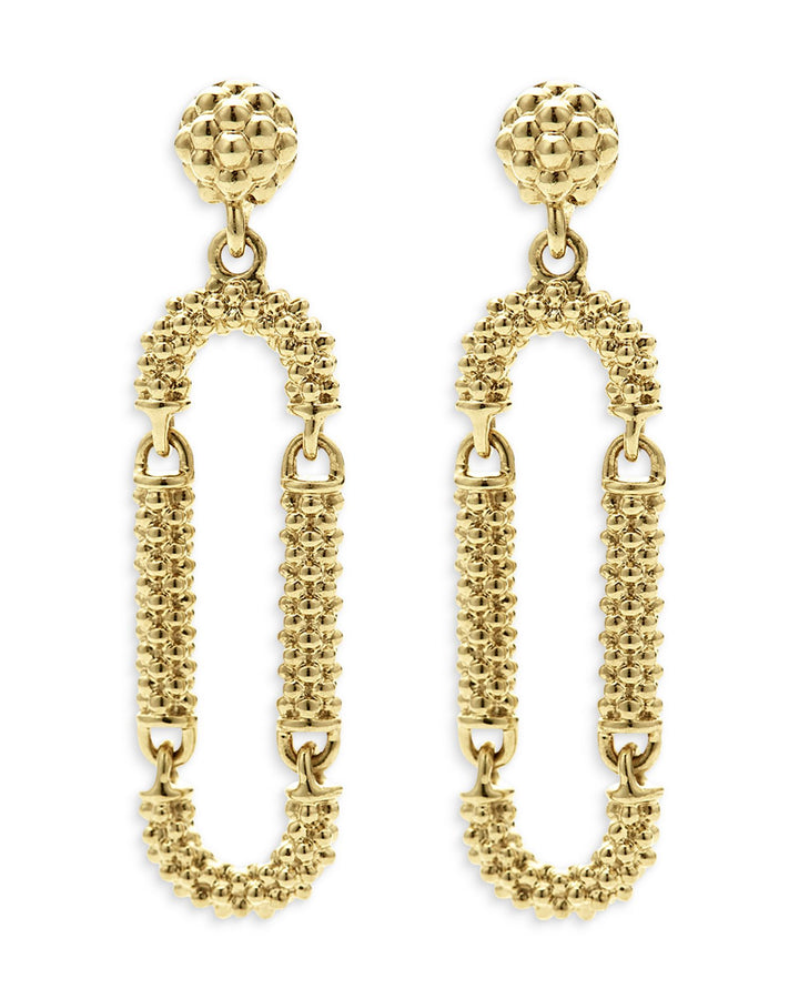 These 18K Yellow Gold Signature Caviar Superfine Long Drop Earrings by LAGOS are a timeless and elegant design. Featuring superfine Caviar beading in a sleek oval drop silhouette, these earrings from the Signature Caviar Collection exude sophistication and versatility, perfect for any occasion.