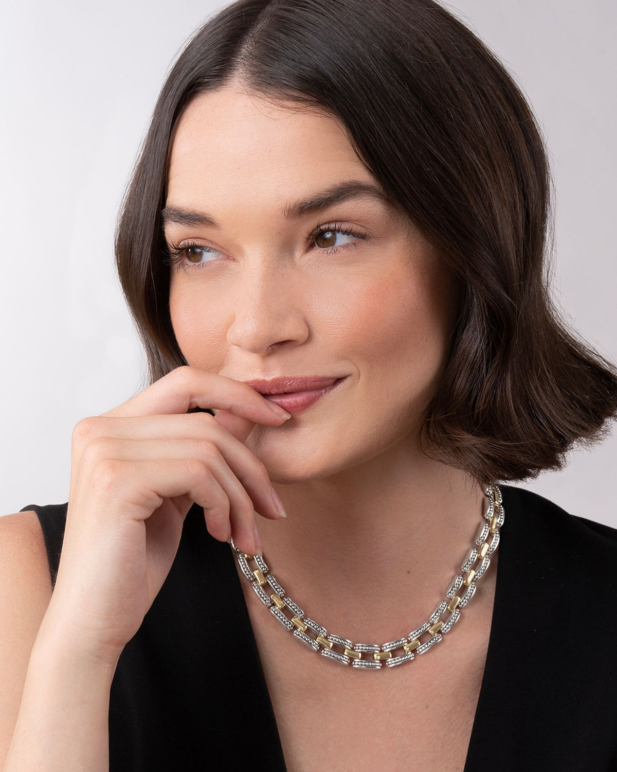 18K Yellow Gold & Sterling Silver High Bar Link Statement Necklaces
