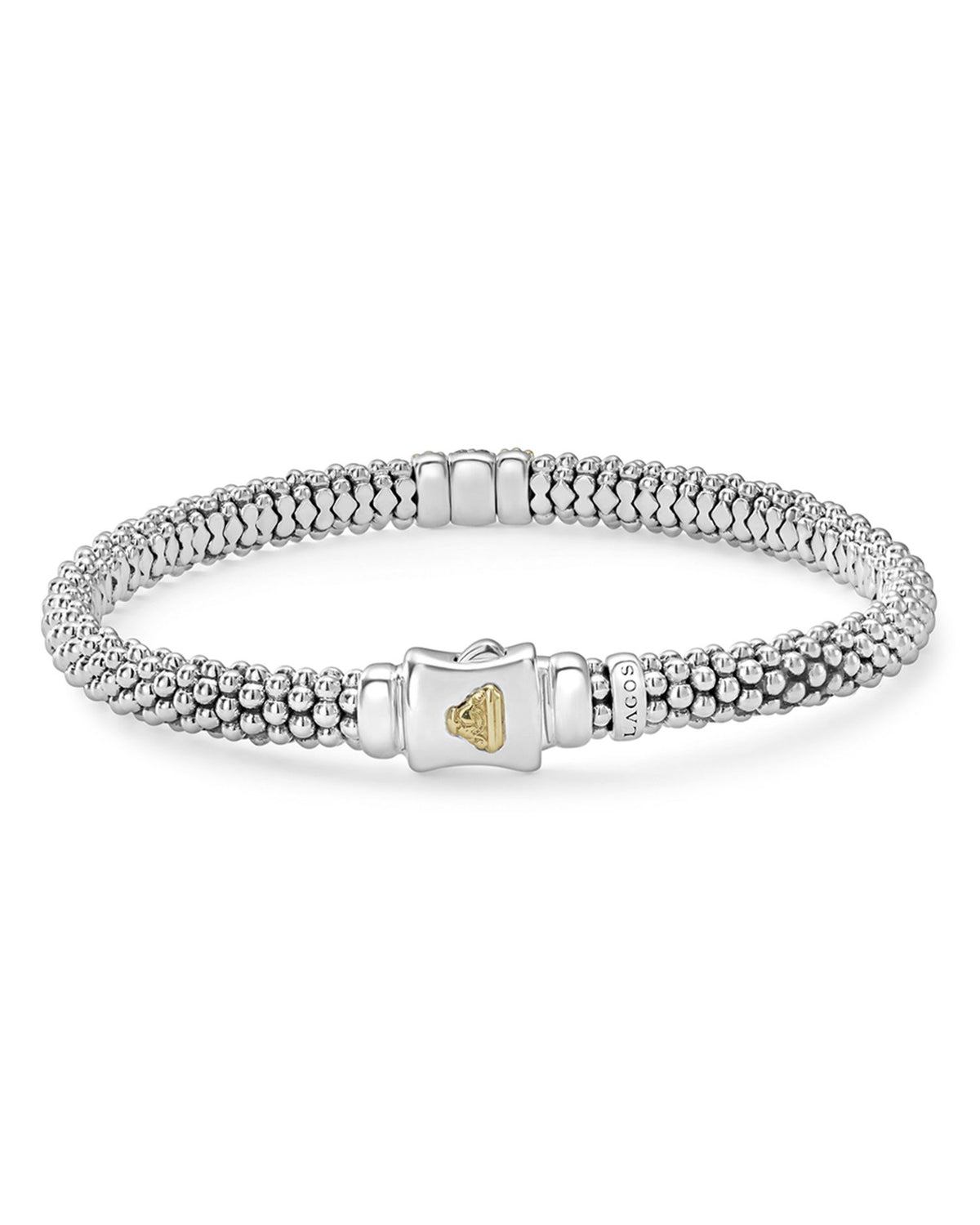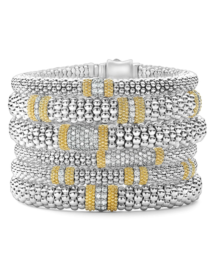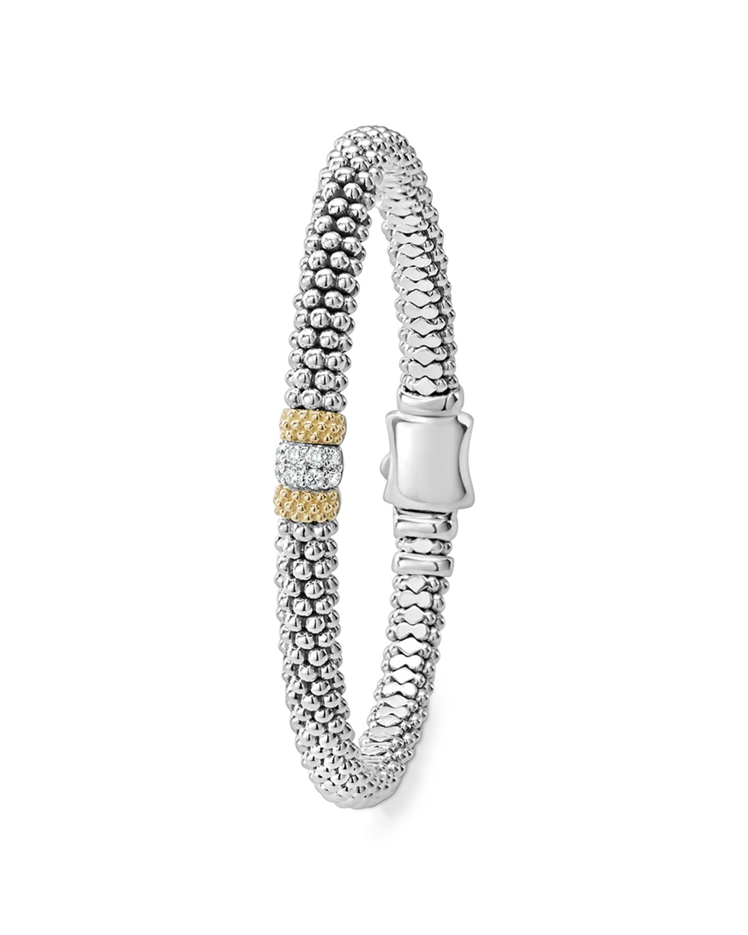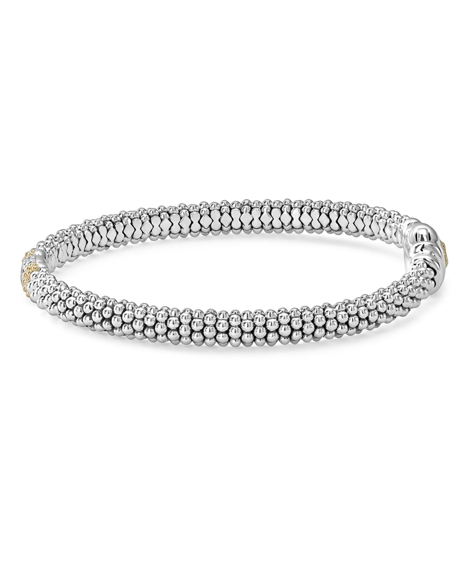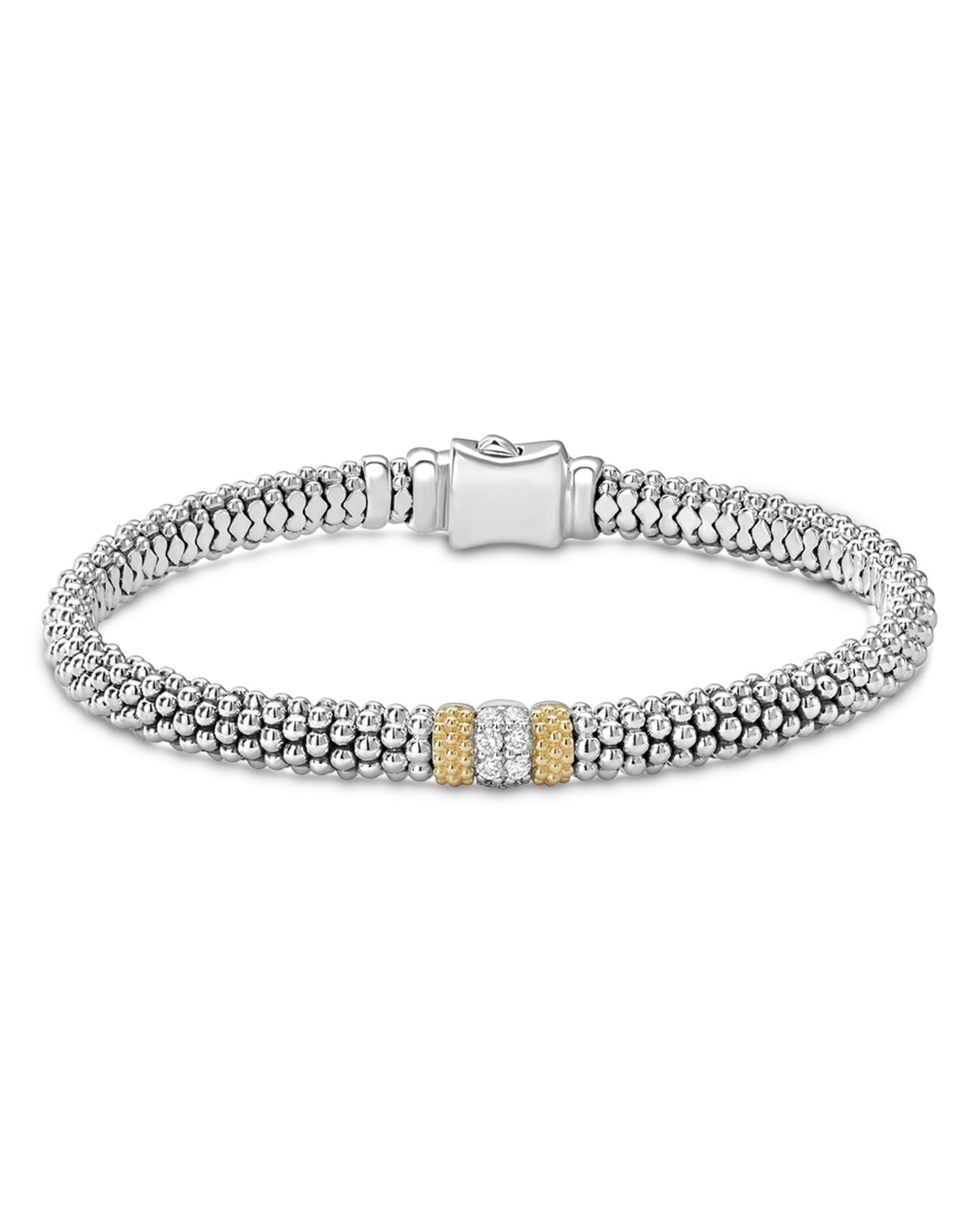This 18K Gold & Sterling Silver Diamond Lux Single Station Bracelet by LAGOS blends understated elegance with sparkling sophistication. Featuring a single diamond station, this bracelet highlights the signature Caviar beading in a refined design that’s ideal for any occasion.