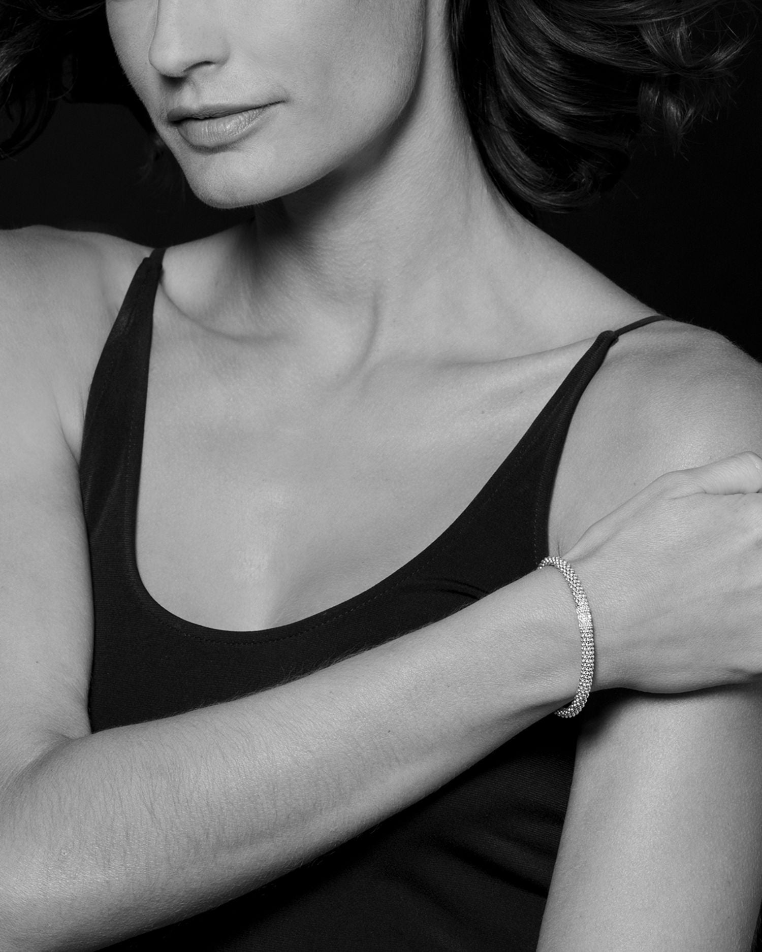 Handcrafted in 18K gold and sterling silver with 0.20 ct. t.w. diamonds. Measures 7' in length and 6mm in width. Secured with a box clasp closure.