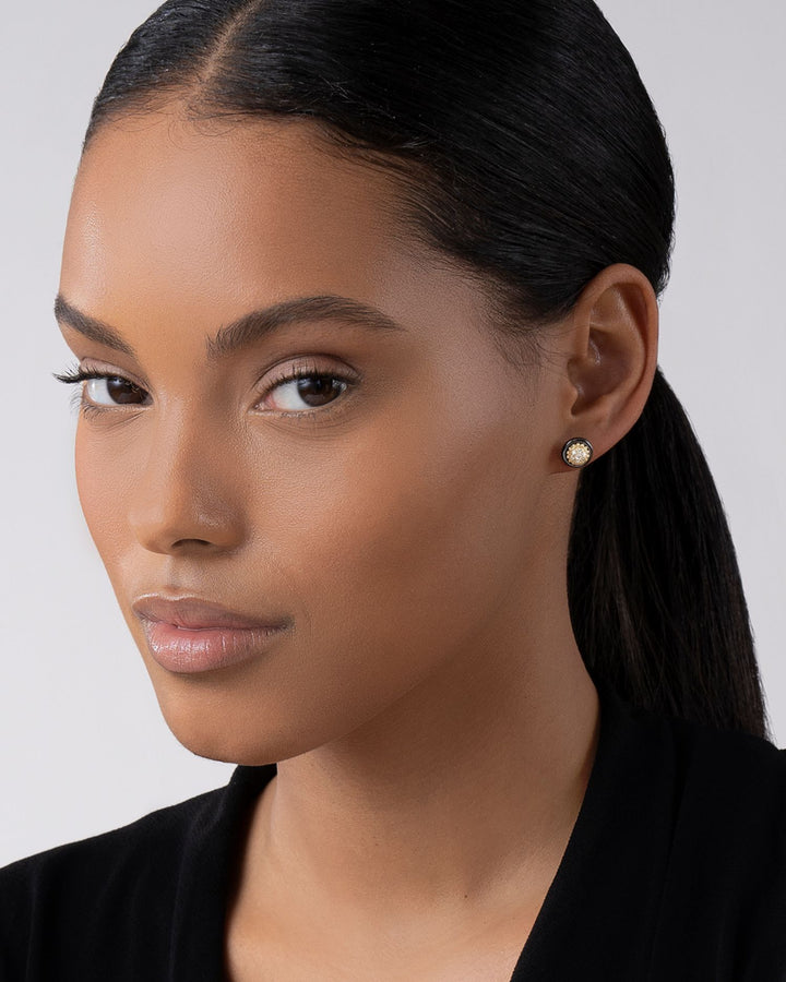 Meridian 18K Yellow Gold and Black Caviar Diamond Stud Earrings