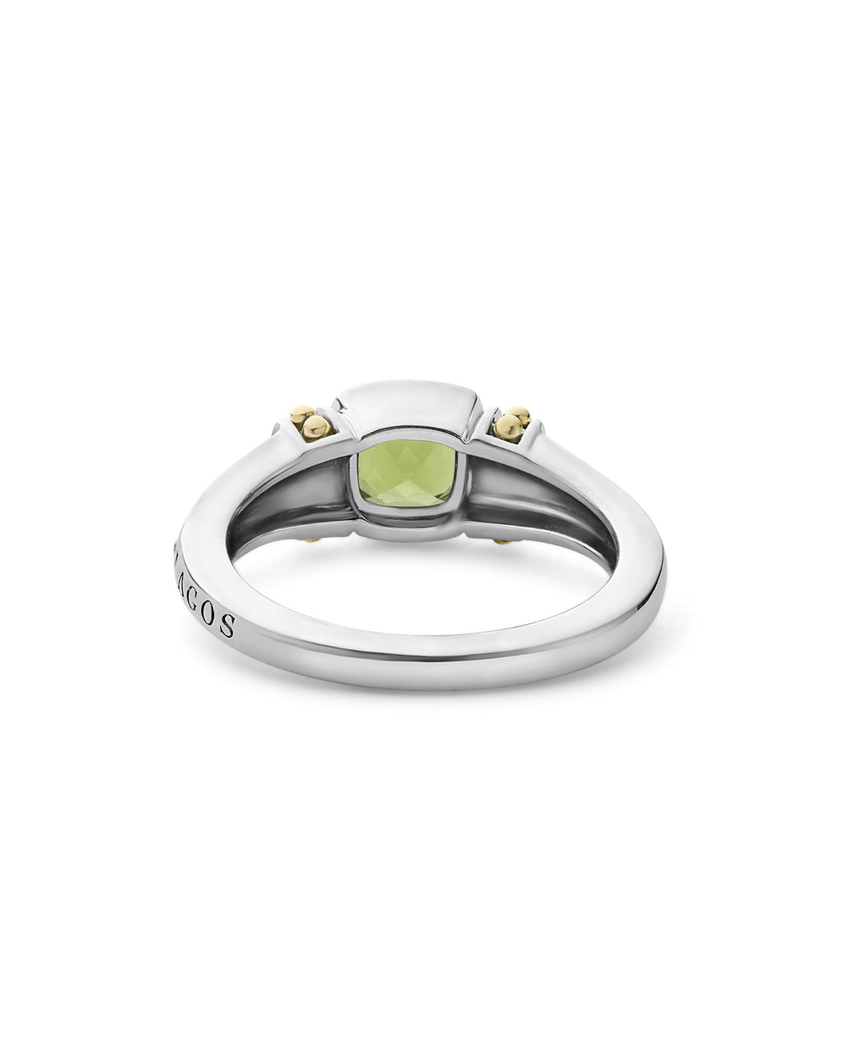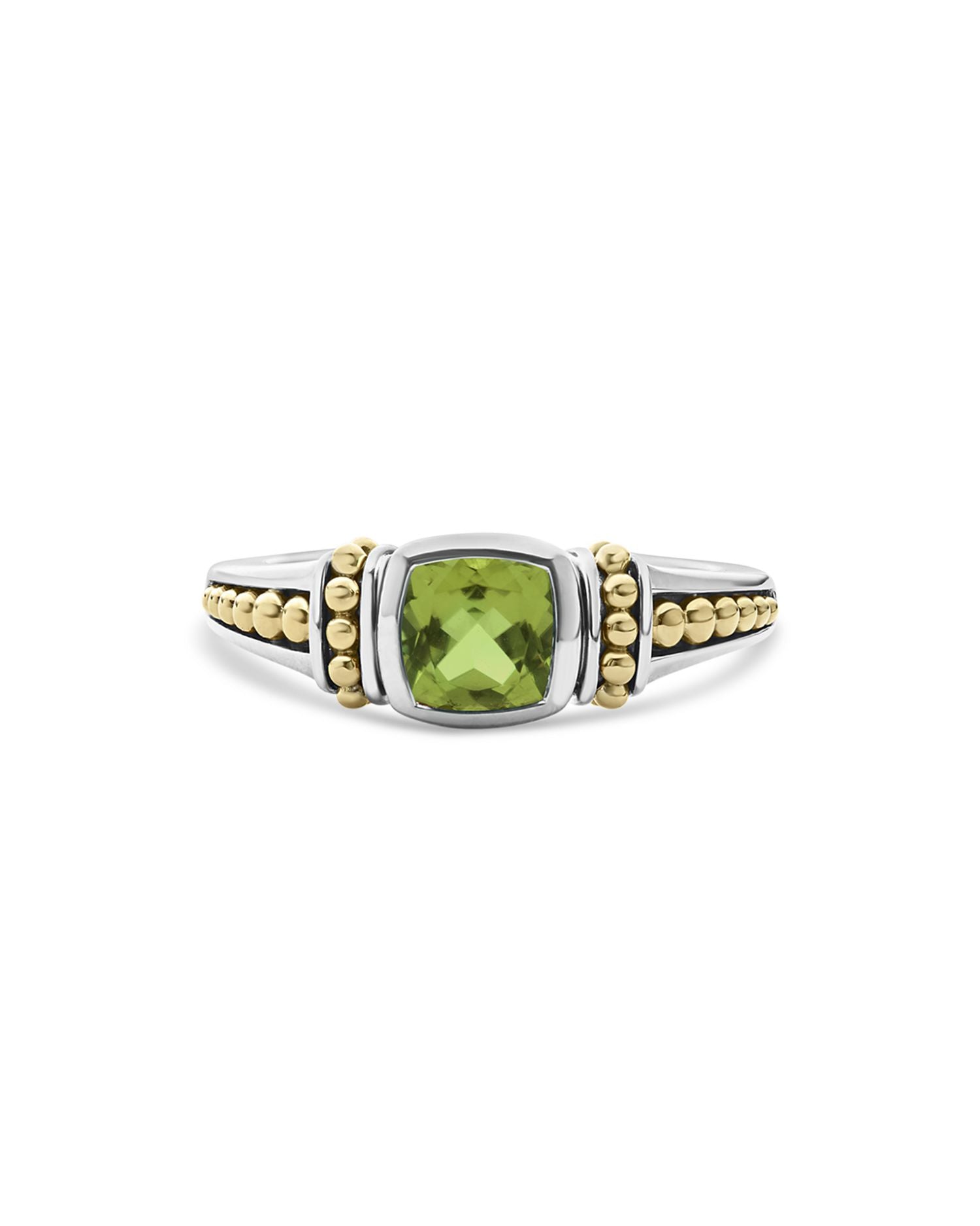 The Rittenhouse Peridot Ring by LAGOS adds a pop of vibrant color to your jewelry collection. With a chic peridot centerpiece surrounded by sterling silver and 18K gold Caviar beading, this ring is perfect for adding a touch of playful sophistication to any look.