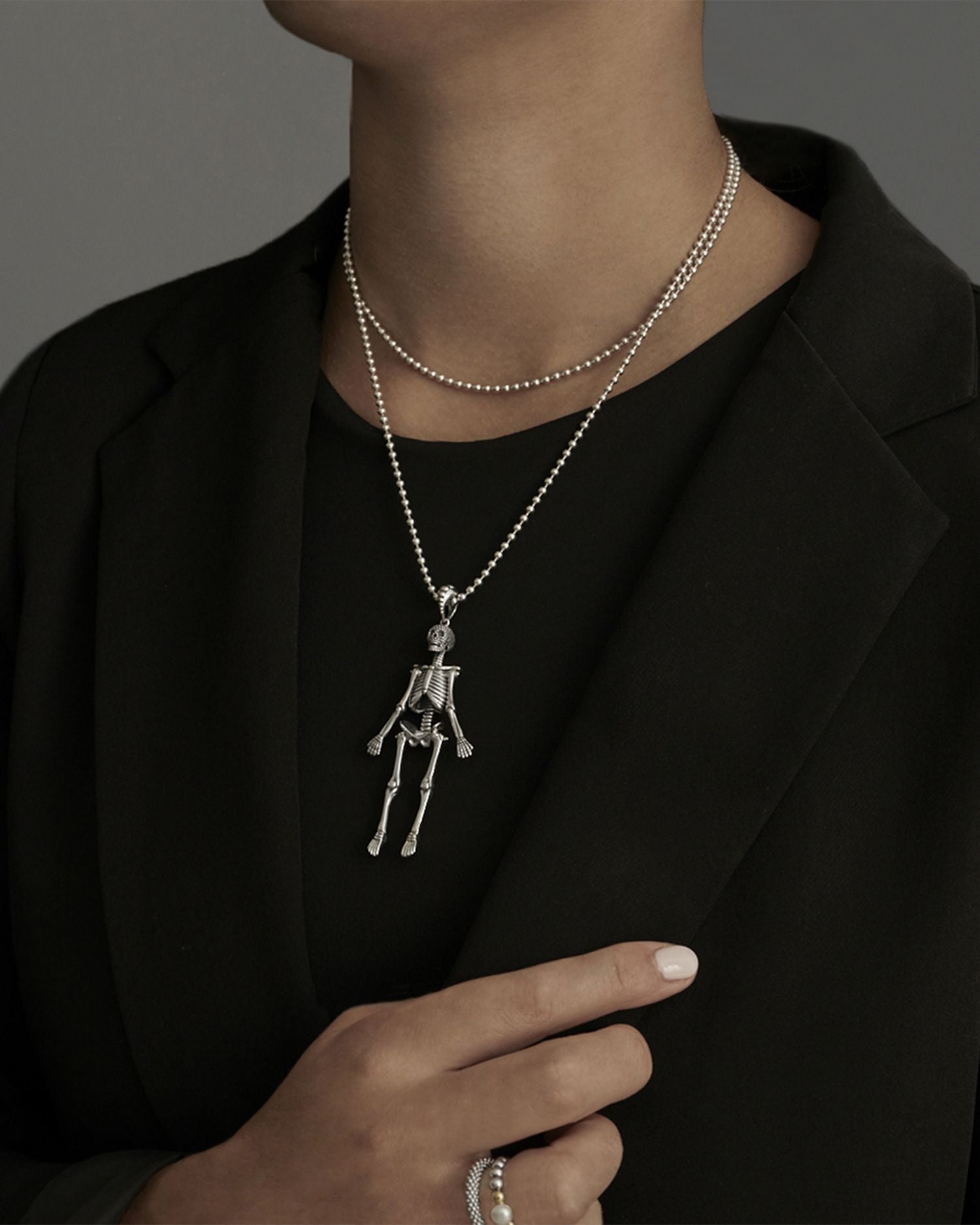 This Rare Wonders Skeleton Pendant Necklace by LAGOS adds a touch of gothic elegance to your jewelry collection. The intricate sterling silver skeleton pendant makes a bold and darkly beautiful statement, perfect for those who love unique and edgy designs.